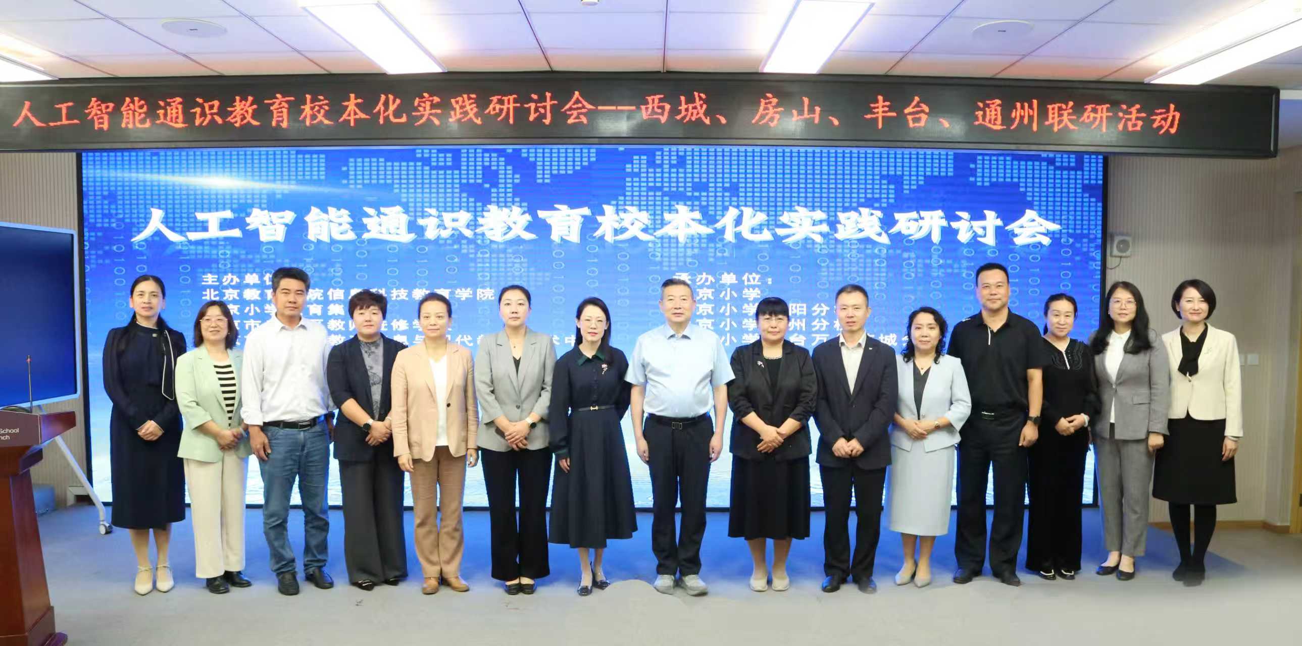9月25日,“人工智能通识教育校本化实践研讨会暨西城、房山、丰台、通州联研活动”在北京小学长阳分校举办。该活动是北京教育学院协同创新项目“基于教学改革融合信息技术的新型教与学模式实践探索”的一次成果交流,旨在展示项目典型成果,总结协同创新实践经验,探索可推广的人工智能教育实践新模式,构建赋能未来教育的新生态。房山区教育委员会主任于海侠、房山区教师进修学校校长张月英、房山区教育信息中心主任史文珍、北京教育学院信息科技教育学院院长吴珊参加会议。活动线上线下共八百余人参会。研讨会由北京小学长阳分校副校长王洋主持。