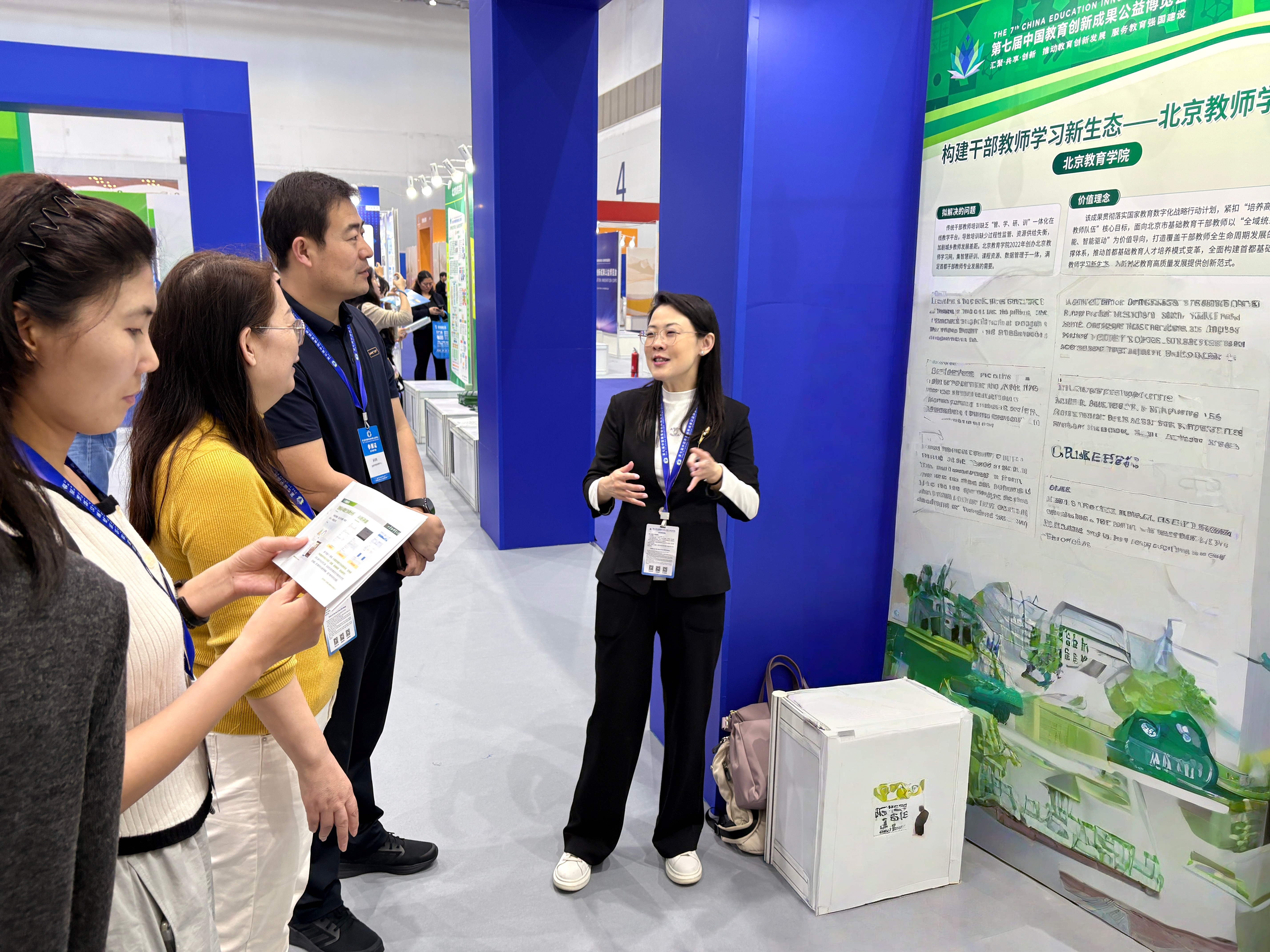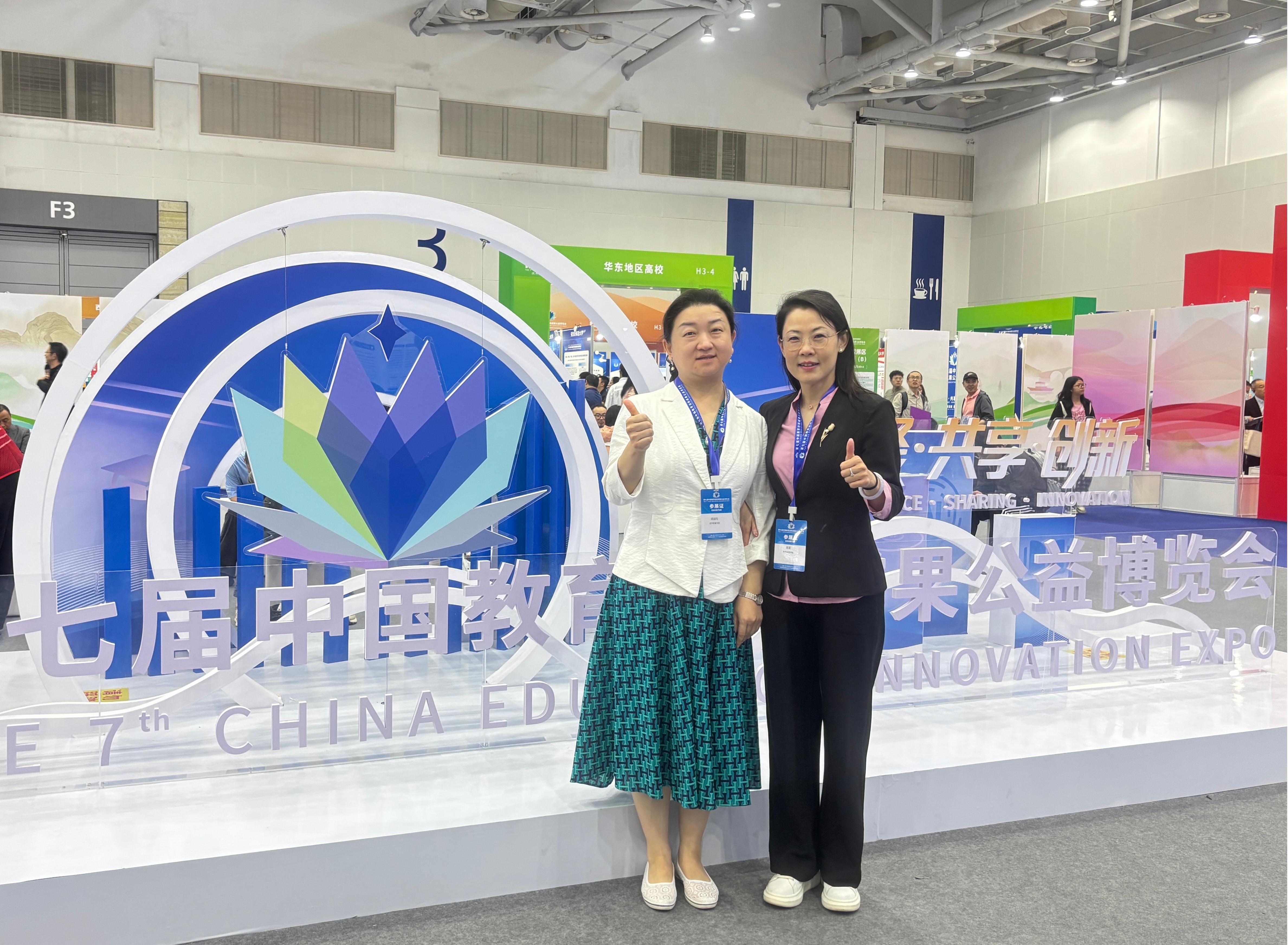 2025年11月15日,第七届中国教育创新成果公益博览会(以下简称“教博会”)在珠海国际会展中心隆重开幕。本届教博会由北京师范大学主办,以“汇聚·共享·创新——推动教育创新发展,服务教育强国建设”为主题,汇聚全国教育领域优质成果与行业精英。经层层推选,北京教育学院信息科技教育学院《北京教师学习网——构建干部教师学习新生态》成功入选本届教博会。信息科技教育学院院长吴珊、副院长胡淑均现场参会。