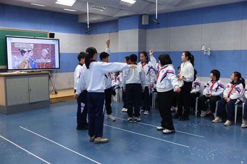 在主会场与分会场,教育戏剧研究中心联动多校展示三节学科融合研究课,覆盖语文、英语与艺术学科。教师们灵活运用“读者剧场”“良心巷”等戏剧策略,将文本感悟、语言学习与中华美德传承、低年级学生综合能力发展有机融入课堂,生动呈现了教育戏剧跨学科融合的实践样态。