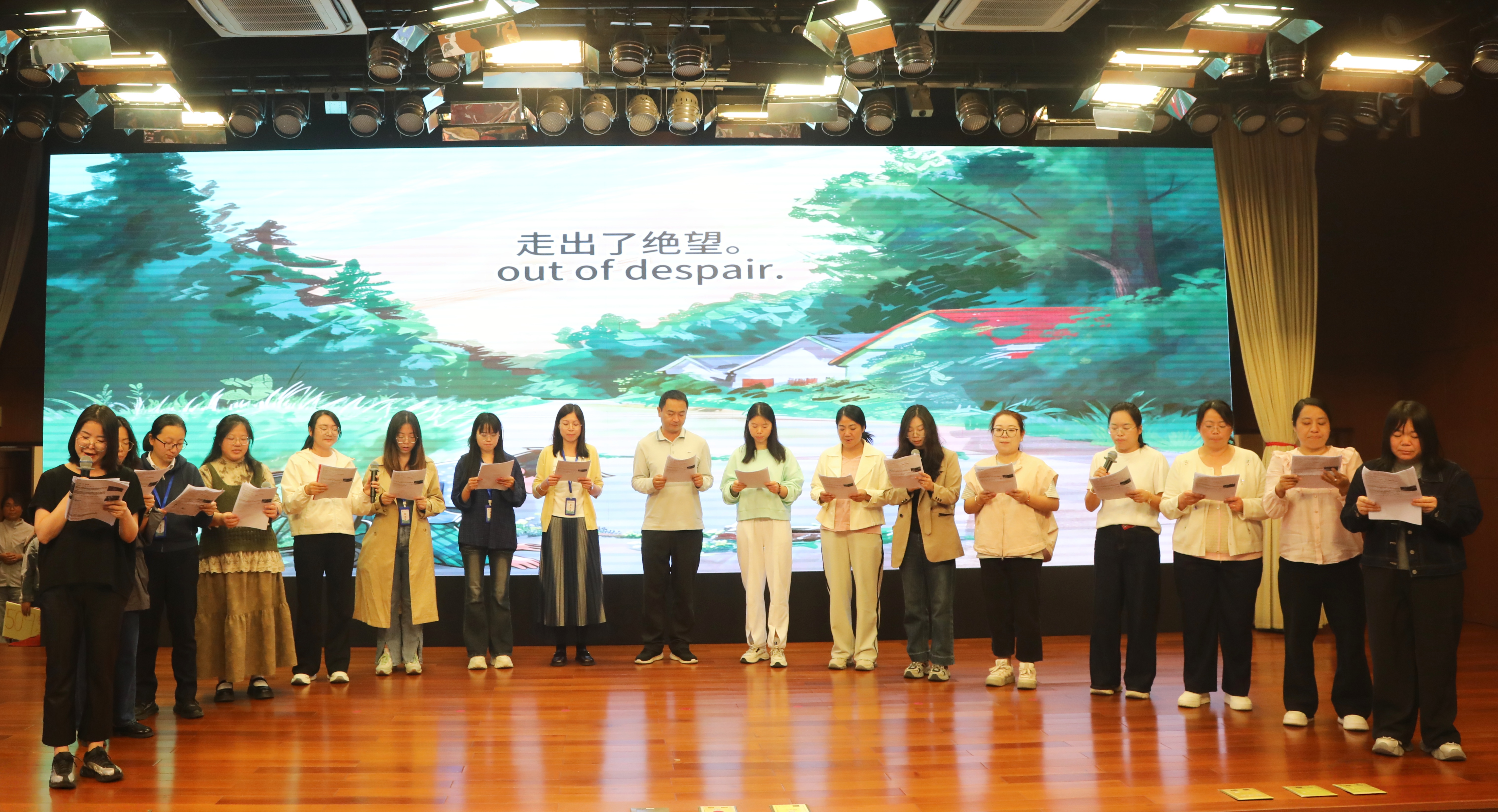 两个培训班的学员代表进行成果汇报,小学组带来了《从硬撑到顿悟——一名边疆教师践行英语学习活动观的真实之路》等分享,初中组则展示了《笔尖生花 学海导航——个性化笔记赋能自主学习之路》《智教无界,剧演有声——AI赋能读者剧场教学的云南实践》等创新案例,充分体现了培训的实效性与创造性。初中班学员还精心排演表演剧《云起京华,踏光而行》,以艺术形式再现了培训期间的成长与感动。学院党委常委、副院长肖汶出席活动,人文与外语教育学院班子成员、项目团队成员以及专家参加活动,并为学员颁发结业证书和优秀学员证书。