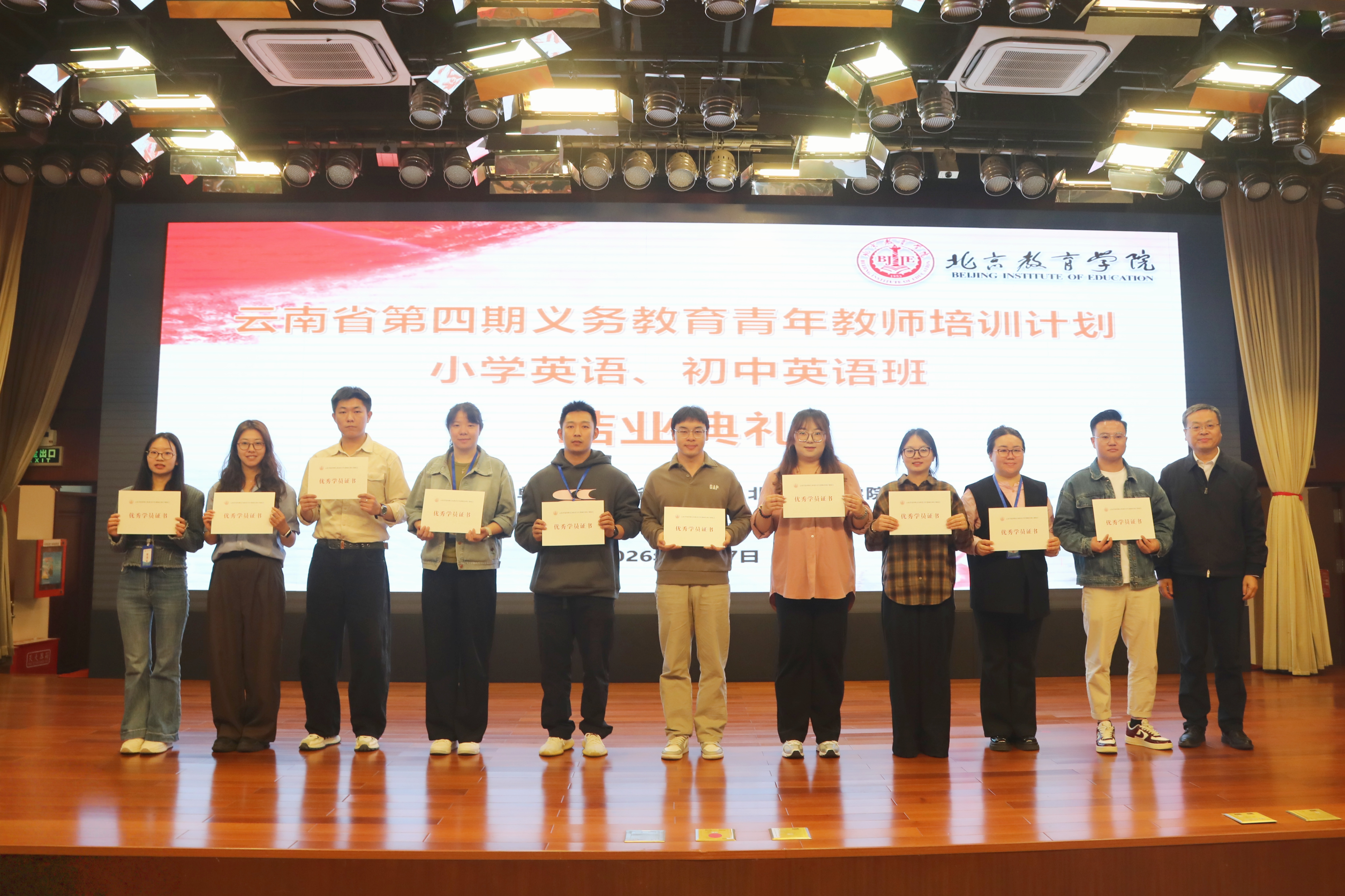 历时42天,跨越两个阶段,4月27日,云南省第四期义务教育青年教师培训小学与初中英语班在北京教育学院顺利完成研修任务并举行结业典礼。培训班实行“培训—实践—再培训—再实践”的闭环研修模式,以“课堂革命——以学为主的课堂教学改革”为主题,旨在全面提升云南义务教育阶段英语青年教师的育人能力与教学实操水平,为云南基础教育高质量发展注入新动能。