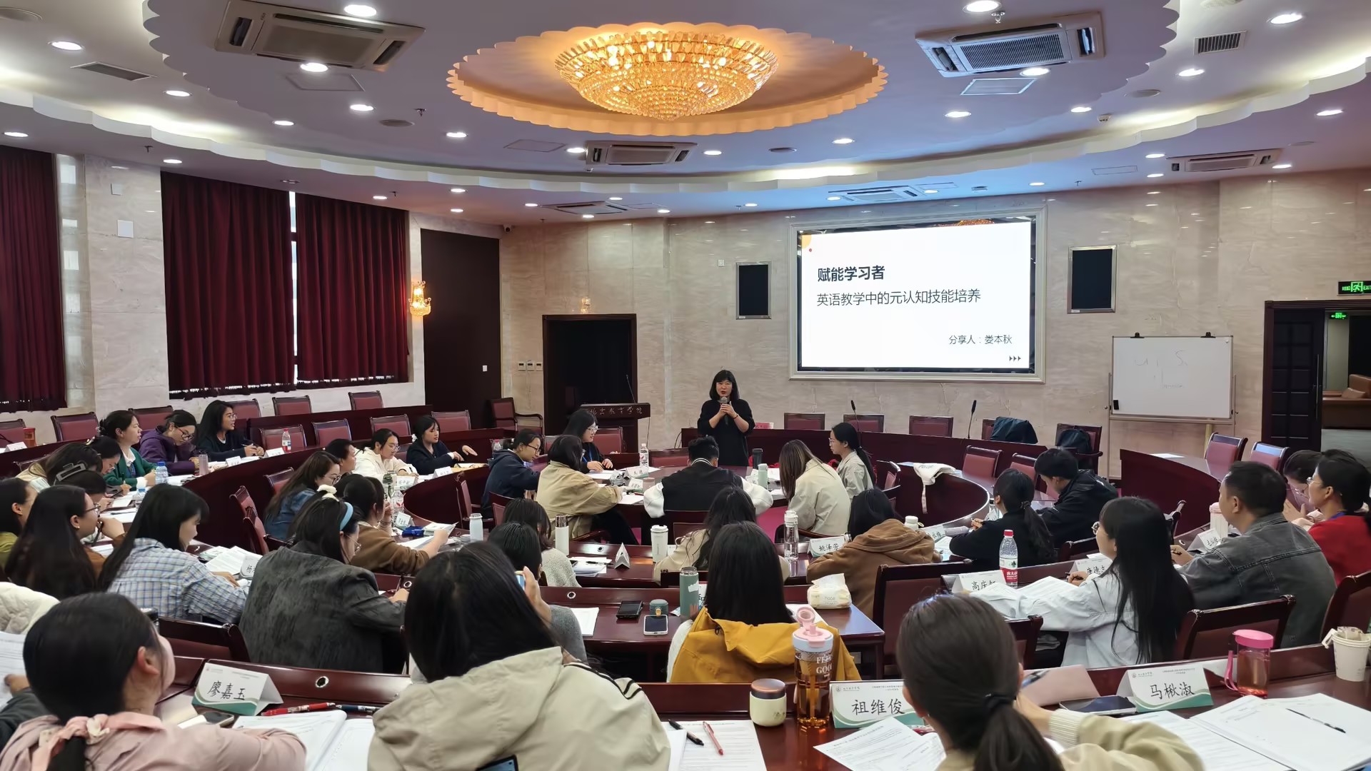 从“英语学科育人导向的新课标案例解读”到“农村地区学生核心素养提升策略”,从“初中生元认知学习策略的培养”到“基于POA产出导向的写作教学工作坊”,初中英语班培训课程安排密集而系统,内容覆盖教学设计、课堂实施、学习评价、教师研究等全链条。小学英语班则围绕新教材理解、活动设计、语音教学、绘本阅读等模块同步开展系统研修。