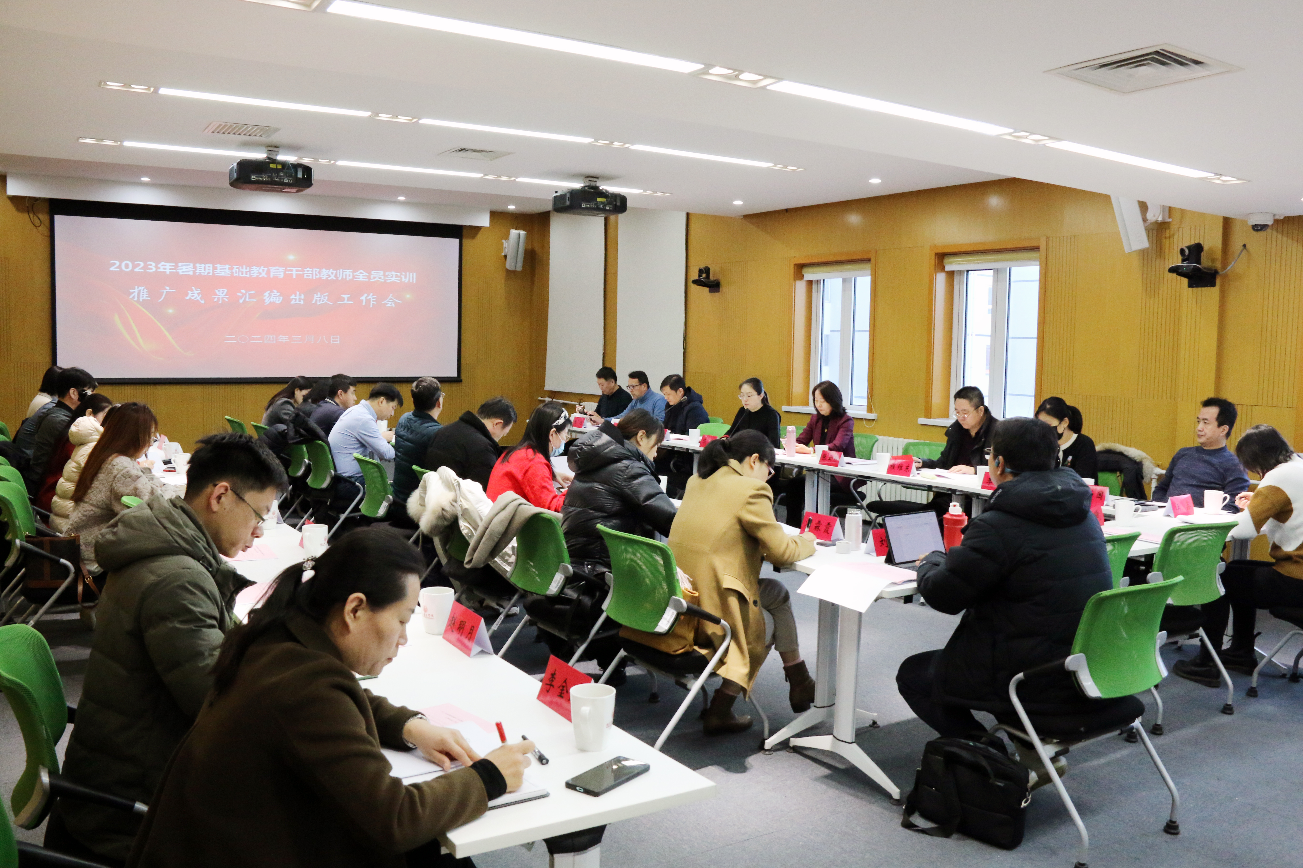 按照北京市教委《筑牢教育强国根基 全面提升教师教书育人素质 促进首都基础教育高质量发展暨暑期基础教育干部教师全员实训工作方案》总体要求,为进一步促进全员实训成果的转化和交流,发挥优秀成果的示范引领作用,市教委组织启动了2023年暑期基础教育干部教师全员实训推广成果出版工作。2024年3月8日,在市教委人事处的指导下,学院组织召开2023年暑期基础教育干部教师全员实训推广成果出版工作部署会。会议以线上线下相结合的方式进行,市教委人事处相关干部、学院培训管理办公室/教务处负责人、各区教委人事科科长、各区教师培训机构师训部门负责人、北京出版集团相关部门负责人线下参加会议,各区暑期实训推广成果作者近300人线上参加本次会议。会议由市教委人事处干部陈静主持。