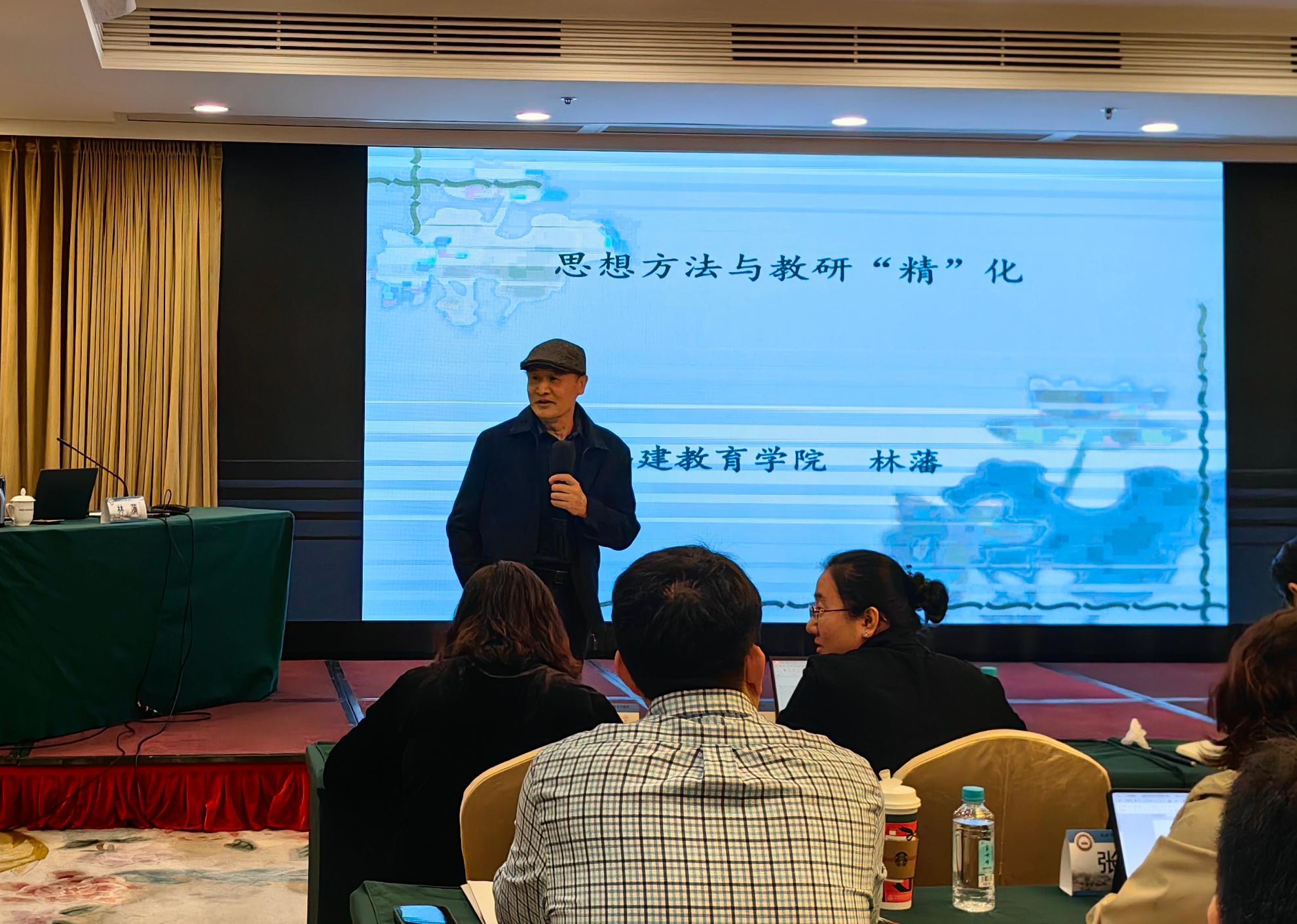 福建教育学院林藩教授以《思想方法与教研“精”化》专题讲座拉开了研修活动的序幕。他结合福建本地教研创新案例,从课题研究、课堂打磨、团队建设等维度,为学员们解析“精研细教”的实践方法,为学科深度教科工作提供了清晰指引。