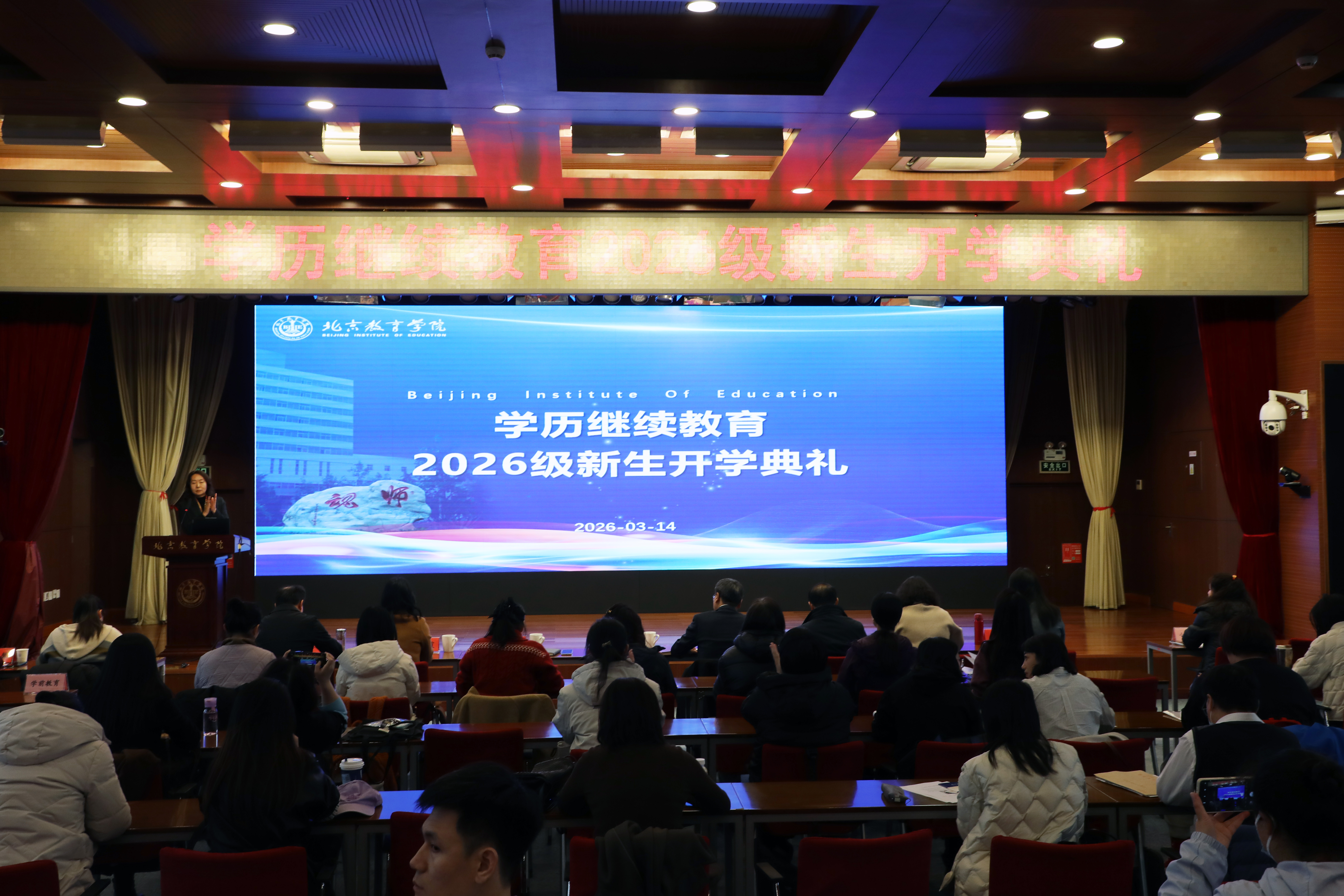 为深入贯彻落实立德树人根本任务,充分发挥开学典礼作为思政育人的重要阵地,3月14日学院举办学历继续教育2026级新生开学典礼,为125名新生带来了一堂站位高远、导向鲜明、浸润人心的“大思政课”。学院副院长肖汶出席会议并讲话,党委学员工作部/教务处及相关二级学院负责人、各专业负责人、班主任,教学管理人员以及全体新生参加典礼。典礼由党委学员工作部/教务处处长张金秀主持。