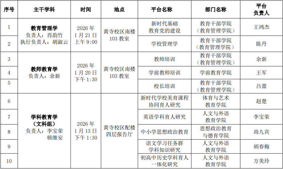依据《北京教育学院学科建设三年行动计划》和《北京教育学院“十四五”时期学科创新平台评审评估实施方案》的相关要求,学院将以四大主干学科为单位,组织召开“十四五”时期学科创新平台绩效评估研讨会。现将具体事项通知如下: