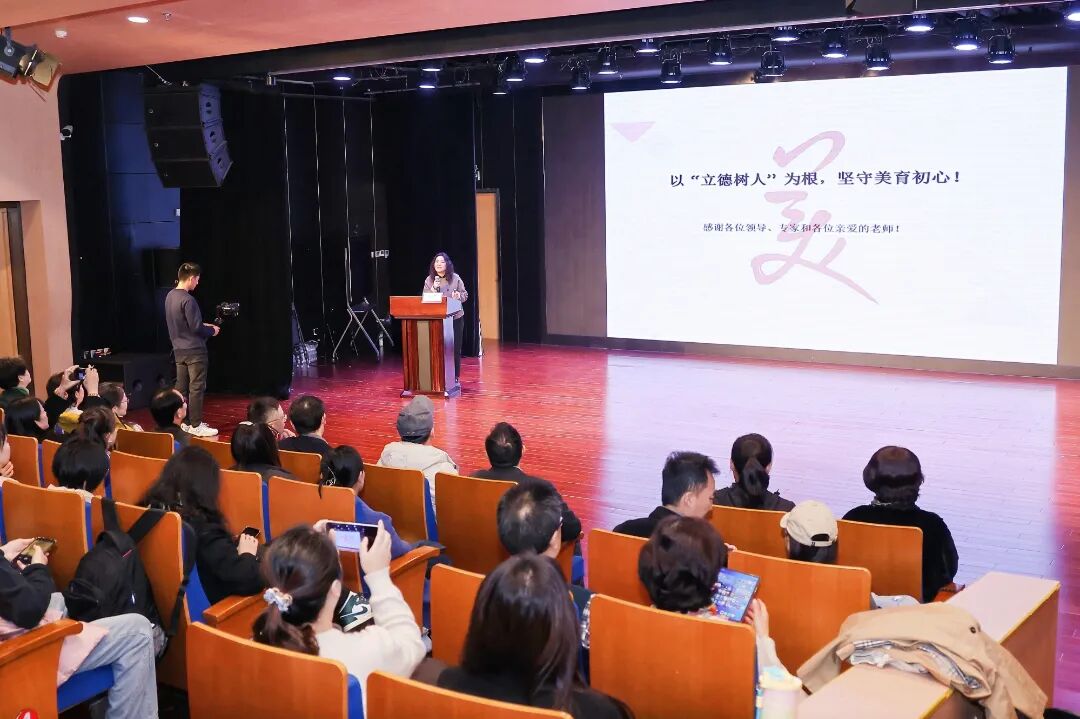 论坛开幕式上,北京教育学院体育与艺术教育学院副院长赵楚作主旨发言,系统阐述了在“五育融合”背景下构建中小学艺术教师综合实践研修体系的思路与举措,提出以场景化、项目化的研修方式推动教师专业成长,促进艺术教育从理念走向课堂实践。作为北京市中小学美育教师综合艺术实践工作坊及课程资源建设项目开展的重要组成部分,此次论坛以“美育浸润行动下的教师研修场域构建与路径创新”为主题,聚焦于“五育融合”“学科美育”“跨学科教学”三大版块,通过“学术引领—沙龙研讨—成果展示”相结合的形式展开,邀请来自朝阳、西城、海淀、丰台等区的教师代表与专家面对面交流,汇聚多位一线教师和教研专家的研究与实践成果,共同探讨了如何以美育为纽带打通学科边界,形成促进学生全面发展的教育生态。