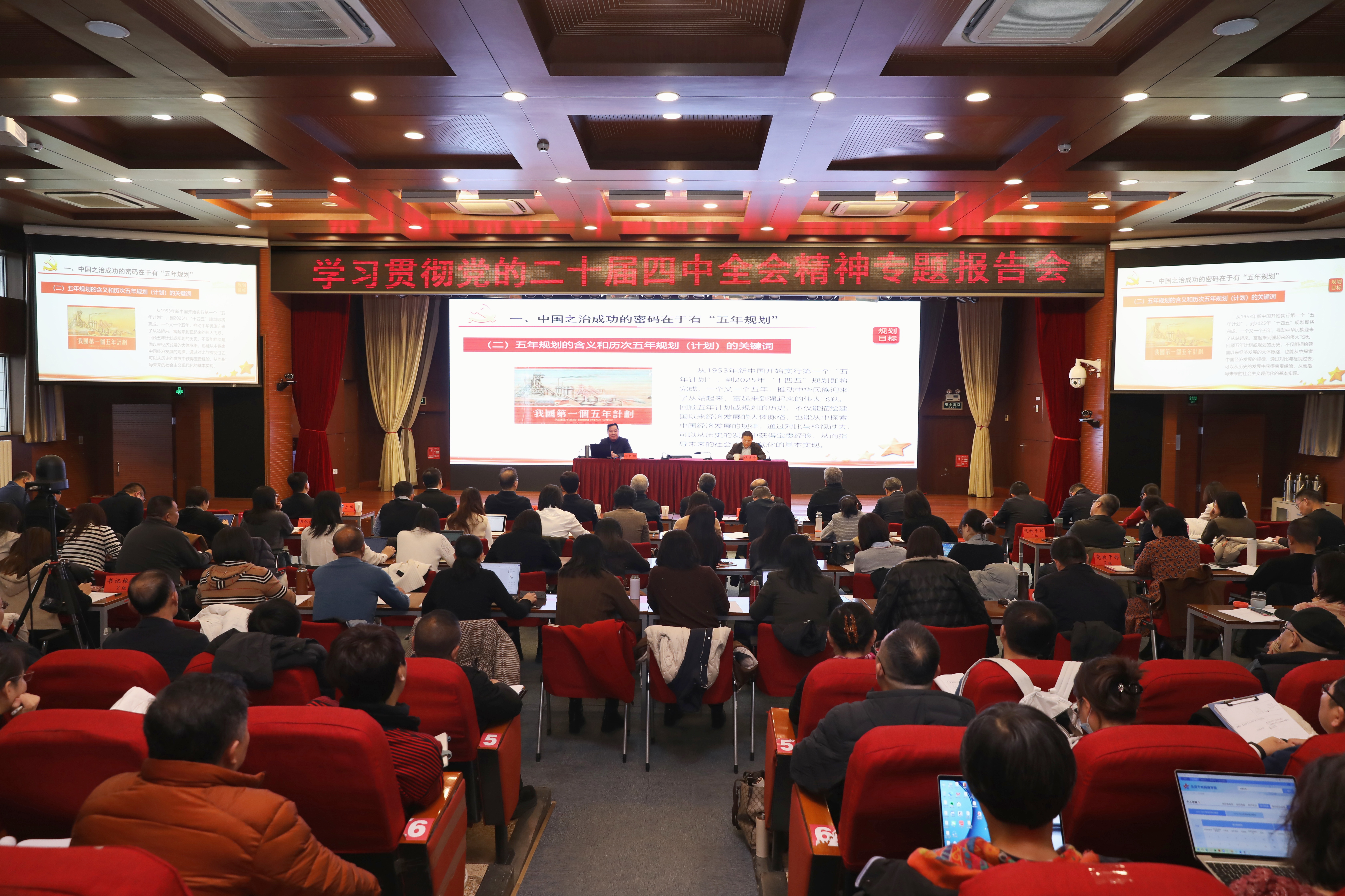 为深入学习贯彻党的二十届四中全会精神,助力引导学院全体教职工充分认识、准确把握党的二十届四中全会的重大意义、战略部署和实践要求,切实把思想和行动统一到全会精神上来,11月24日,北京教育学院举办学习贯彻党的二十届四中全会精神专题报告会。学院领导班子成员、二级党组织书记、中层干部与全体教职工400余人,通过现场参会和线上直播方式参加专题报告会。