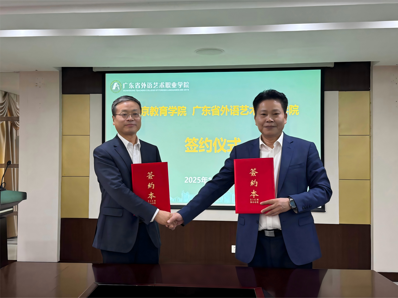 12月4日,北京教育学院与广东省外语艺术职业学院(以下简称“广外艺”)干部教师教育合作协议签约仪式在广外艺五山校区举行。北京教育学院党委常委、副院长肖汶,合作培训部主任张庆新,高级研修中心主任王远美,广东省外语艺术职业学院党委委员、副校长张斌,继续教育学院党支部书记、广东省学前教育师资培训中心与广东省中小学教师发展中心主任刘恬,继续教育学院院长孙志豪、组织宣传统战部副部长何少锋等相关人员出席签约仪式,共同见证京粤两地学前教育干部教师教育协作迈向纵深的重要时刻。