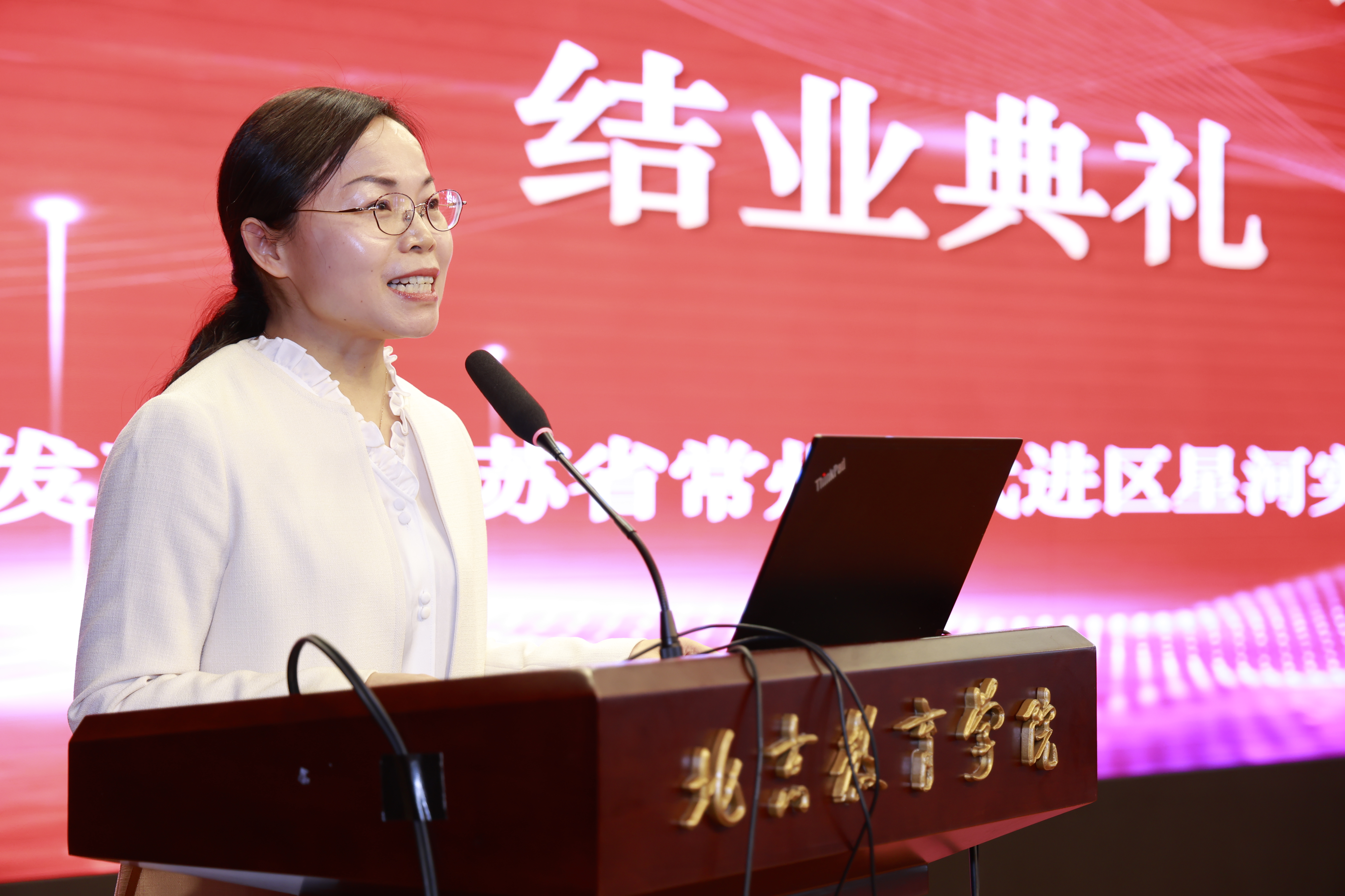 “三年时间,校长们不仅实现了专业能力的提升,更完成了办学思想的凝练、教育情怀的升华、格局视野的拓展,生动诠释了教育家精神在基础教育实践中的落地生根。”魏旭斌代表北京市教委向结业的15位校长表示祝贺,对北京教育学院基地的培养工作给予高度评价。他强调,北京市高度重视基础教育校长队伍建设,各地优秀校长们关注的五育融合、学生身心健康、数字化赋能等关键领域,与当前首都教育综合改革重点方向高度契合,并从五个方向与校长们交流共勉:一是牢牢把握教育的“三大属性”,在落实立德树人根本任务上树标杆、作表率;二是深化新型集团化办学,在构建长链条育人体系上树标杆、作表率;三是主动拥抱人工智能,在推动数字化赋能教育上树标杆、作表率;四是建强育人“统一战线”,在校家社协同育人上树标杆、作表率;五是以教育家精神铸魂强师,在建设高素质专业化教师队伍上树标杆、作表率。