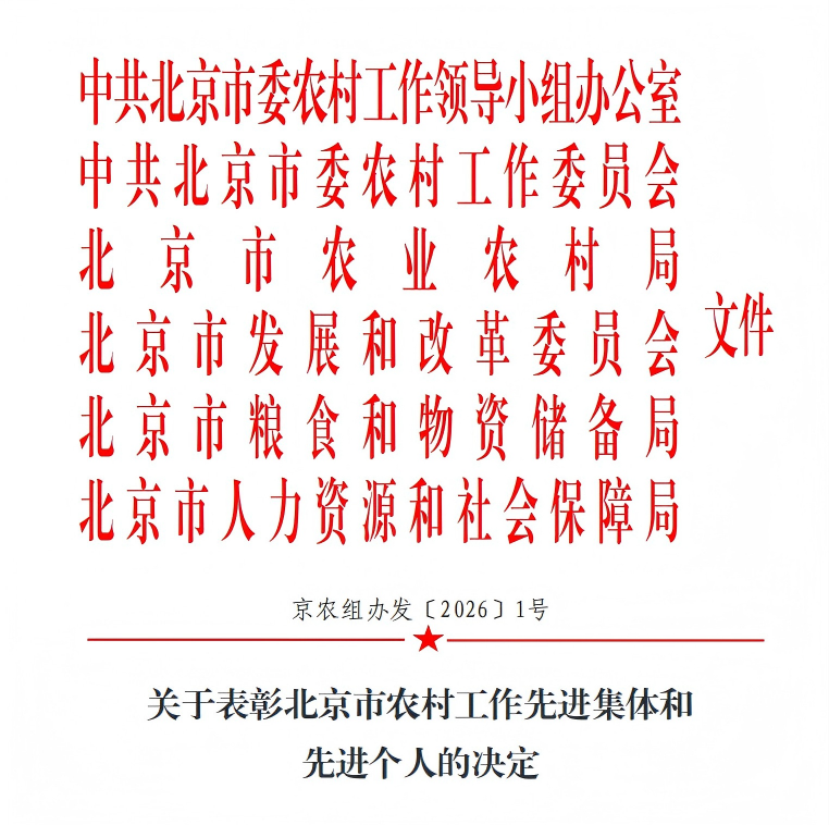 近日,中共北京市委农村工作领导小组办公室、中共北京市委农村工作委员会、北京市农业农村局、北京市发展和改革委员会、北京市粮食和物资储备局、北京市人力资源和社会保障局等部门联合印发《关于表彰北京市农村工作先进集体和先进个人的决定》,全市评选表彰387个北京市农村工作先进集体、380名北京市农村工作先进个人。学院党委教师学员工作部/教务处荣获“北京市农村工作先进集体”称号,党政办公室孙美红同志荣获“北京市农村工作先进个人”称号。