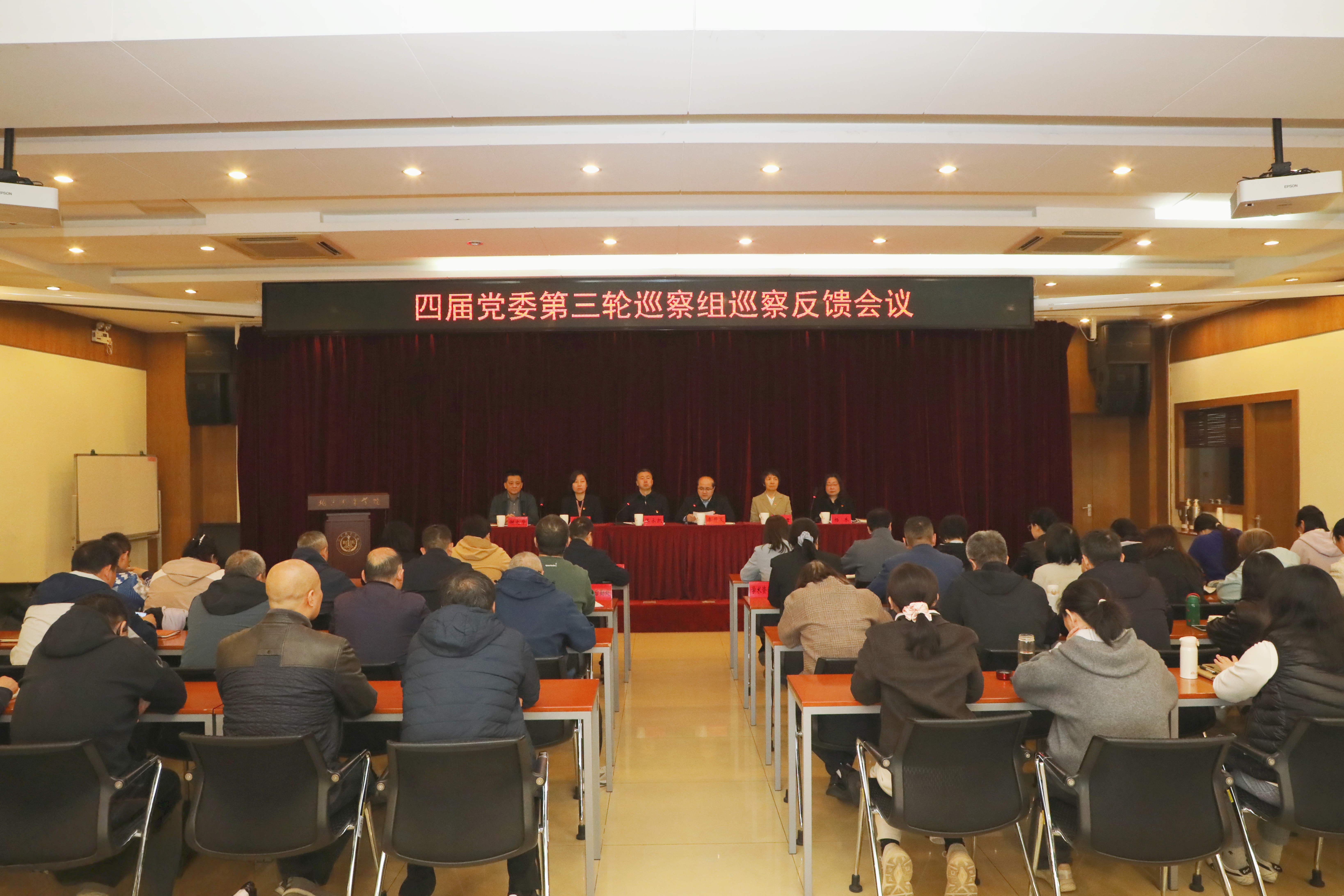 学院党委巡察工作办公室、纪检监察办公室有关人员,巡察组全体成员和两个被巡察党组织全体教职工参加会议。