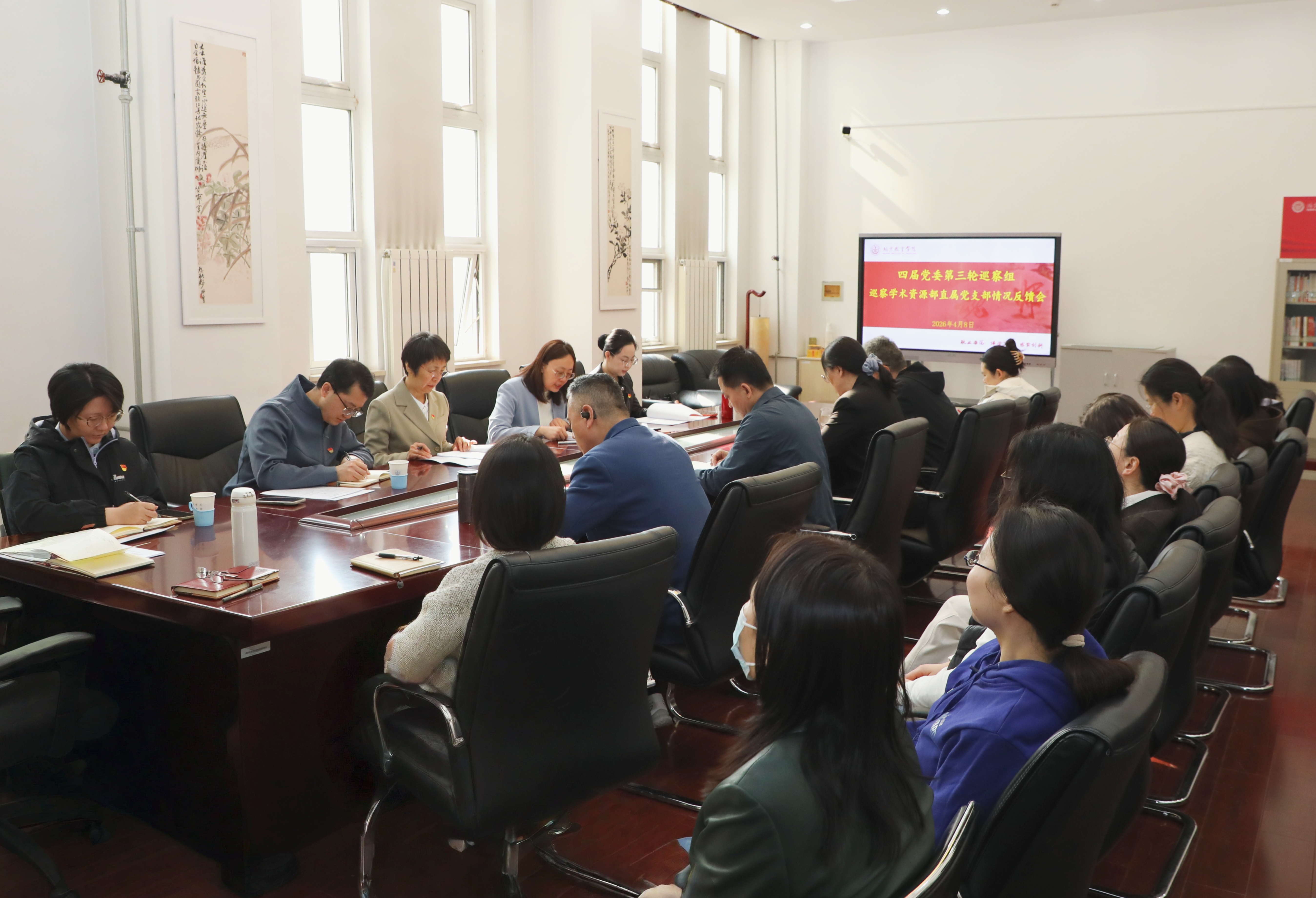 在“一对一”意见反馈阶段,巡察组分别向学术资源部直属党支部、安保后勤处直属党支部两个被巡察党组织反馈了巡察意见,指出了两个党组织在学习贯彻党的创新理论、落实全面从严治党战略部署、践行新时代党的组织路线以及履行整改责任等方面存在的突出问题,并提出了整改意见建议和整改要求。