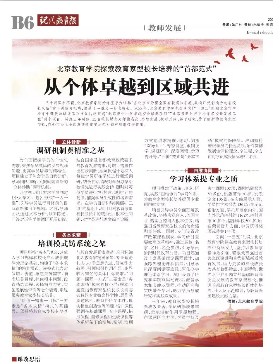 北京教育学院探索教育家型校长培养的“首都范式”,从个体卓越到区域共进