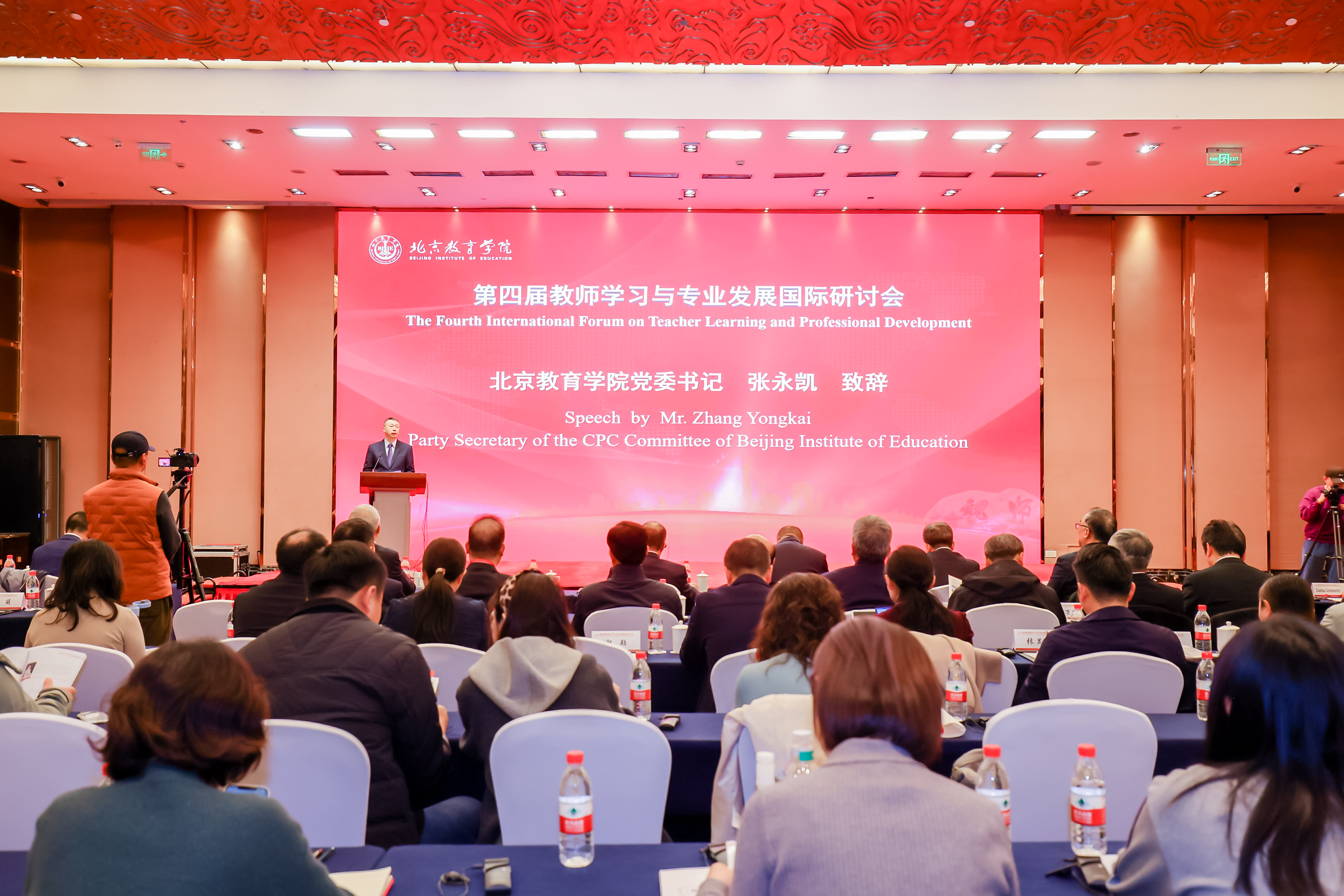 11月9日,北京教育学院党委书记张永凯在第四届教师学习与专业发展国际研讨会开幕式上致辞。主办方供图