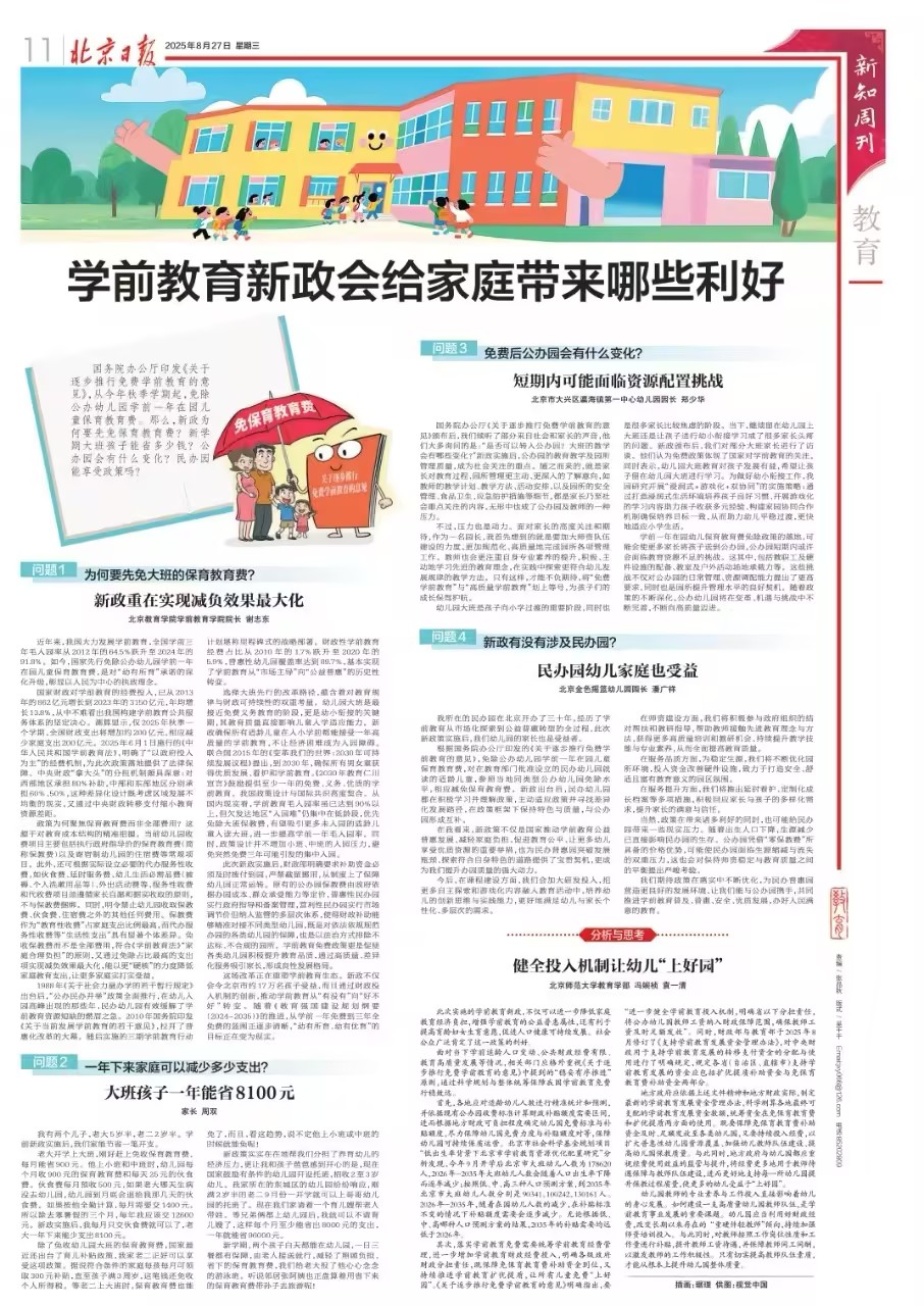 这场改革正在重塑学前教育生态。新政不仅会令北京市约17万名孩子受益,而且通过财政投入机制的创新,推动学前教育从“有没有”向“好不好”转变。随着《教育强国建设规划纲要(2024-2035)》的推进,从学前一年免费到三年全免费的蓝图正逐步清晰,“幼有所育、幼有优育”的目标正在变为现实。