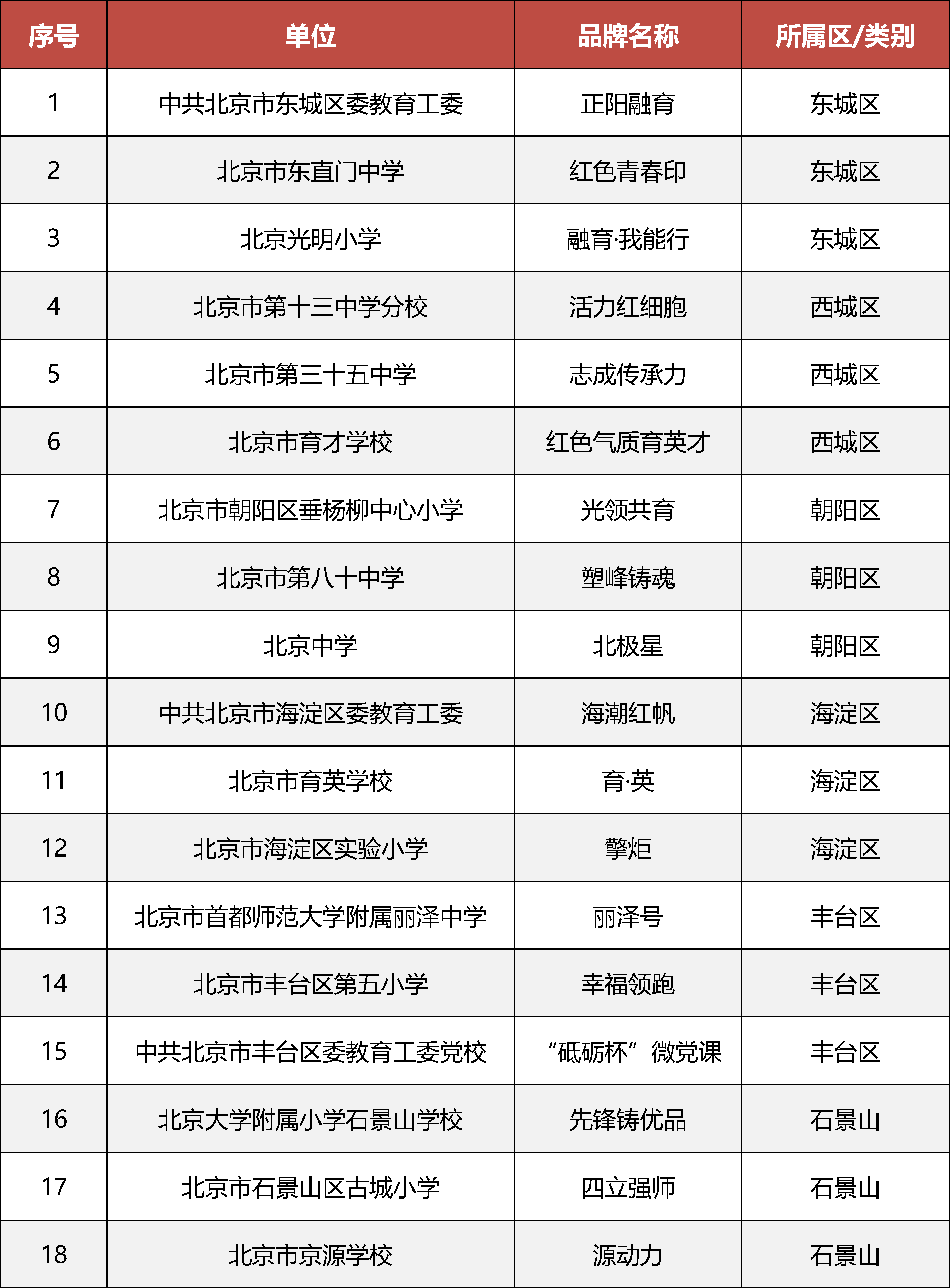 据悉,北京市基础教育党建品牌建设已有二十余年的探索历程。首批基础教育党建品牌推广展示活动覆盖全市各区,坚持将遴选推荐过程转化为指导提升的过程,将党建品牌的价值最终体现在引领发展、赋能育人上。基于长期的工作基础,党建品牌建设工作也列入了《北京市中小学校“党建引领 赋能育人”专项行动计划(2025-2027年)》,将其作为推动党建与业务工作深度融合的有效抓手,进一步完善基础教育系统党建工作体系,提升工作质量。