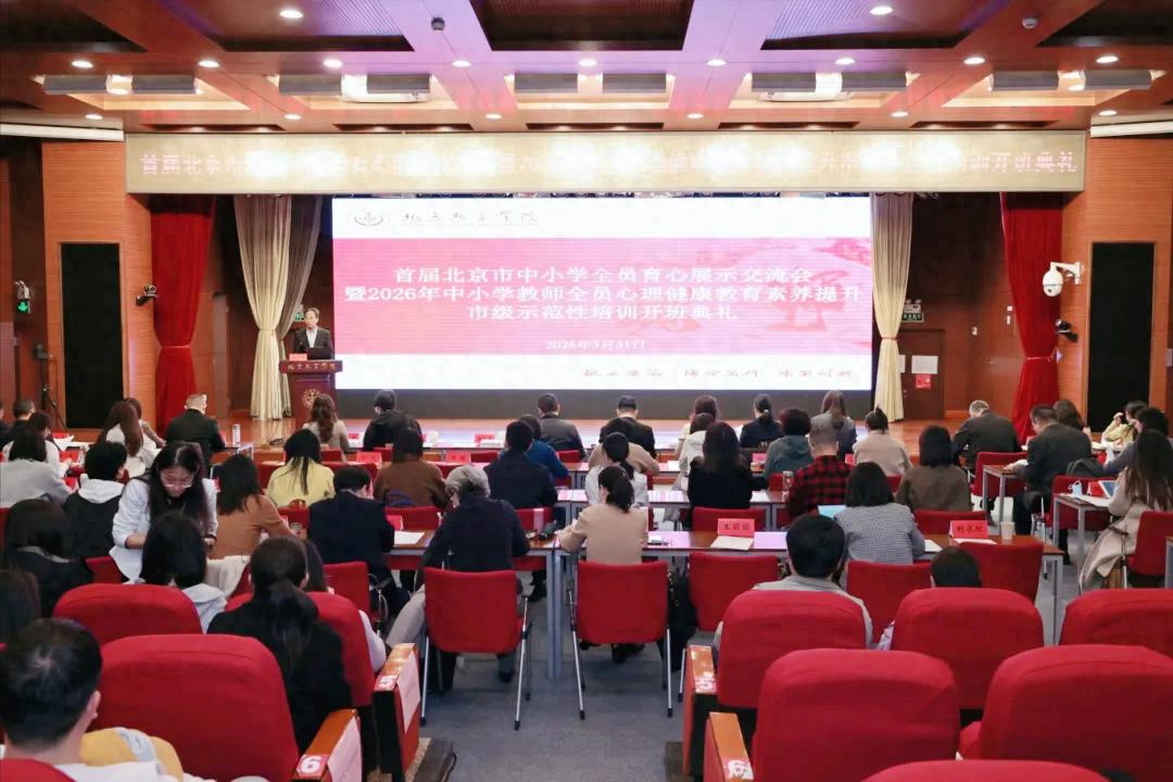 本报讯(通讯员 张泽宇 娄娅)3月31日,首届北京市中小学全员育心展示交流会暨2026年中小学教师全员心理健康教育素养提升市级示范性培训开班典礼,在北京教育学院黄寺校区举行。本次活动以“落实健康第一理念,推进身心健康二十条,构建中小学全员育心新格局”为主题,旨在系统总结2025年全员育心工作的阶段性成果,推动2026年全市心理健康工作向纵深发展。