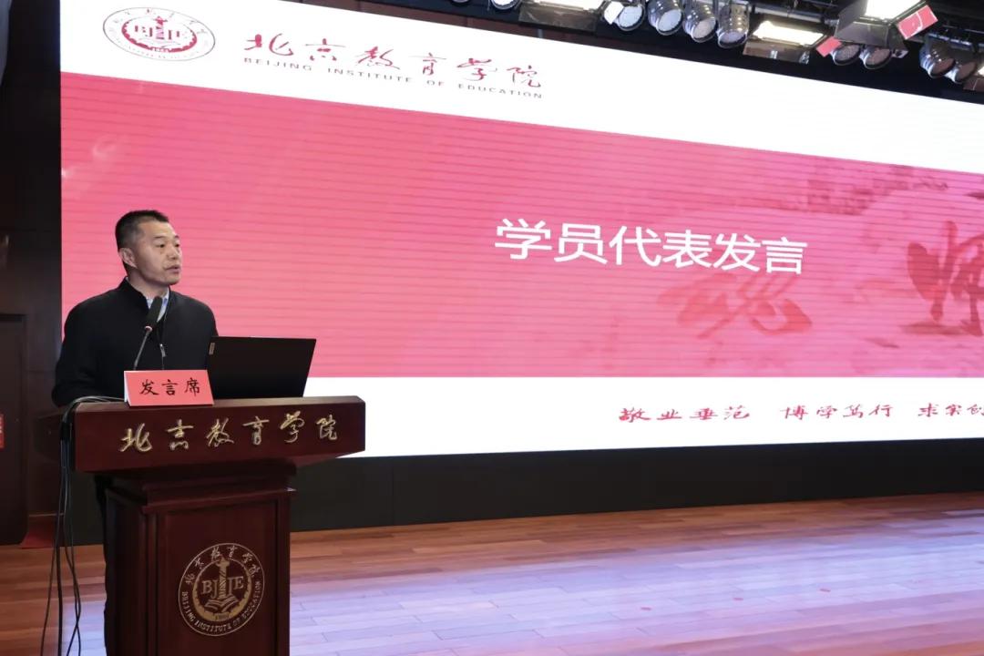 北京市古城中学校长周亚宏作为学员代表郑重承诺,将深入践行“健康第一”的理念,把本次培训成果充分运用到学校心理健康教育工作中,以心护心、以爱育爱,把心理健康教育做细做实、做深做优,落实全周期、全链条心理健康服务要求,为推进首都健康学校建设、护航青少年健康成长贡献力量。
