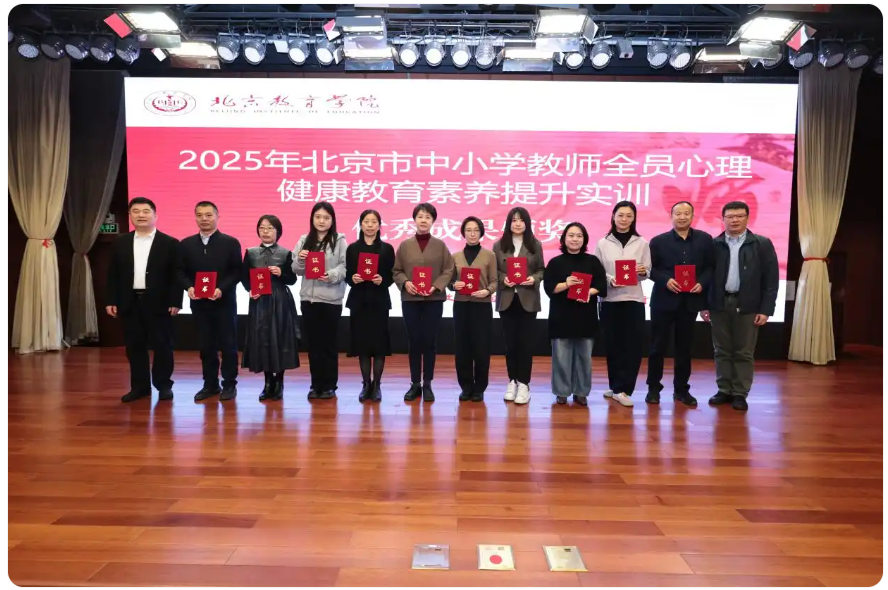 活动现场宣读了2025年全员心理健康教育素养提升实训优秀成果获奖名单,并为获奖教师代表颁发了获奖证书,集中表彰过去一年在中小学心理健康教育工作中深耕实践、成果突出的教育工作者。