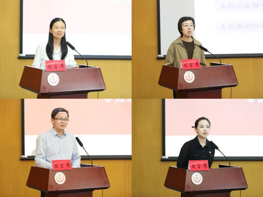 会议首先由张润杰同志以“在立德树人中厚植廉洁文化——监督与大学廉洁文化”为题,由教育领域违纪、违法、腐败产生的危害与根源入手,系统讲解廉洁文化的本质要义与衡量指标,全面梳理大学文化体系的架构、类型与特征,同时结合学院实际,聚焦学院“敬业垂范、博学笃行、求实创新”的校训,探讨学院廉洁文化体系的构建路径与实践方法,同时明确纪检监察工作的职能定位,紧扣纪检监察工作规范化法治化正规化建设年的具体要求,强调在立德树人根本任务中厚植廉洁文化,提出要坚持“专职兼职并重、培养使用衔接、评价提升互促”,强化纪检干部队伍建设,为学院高质量发展保驾护航。