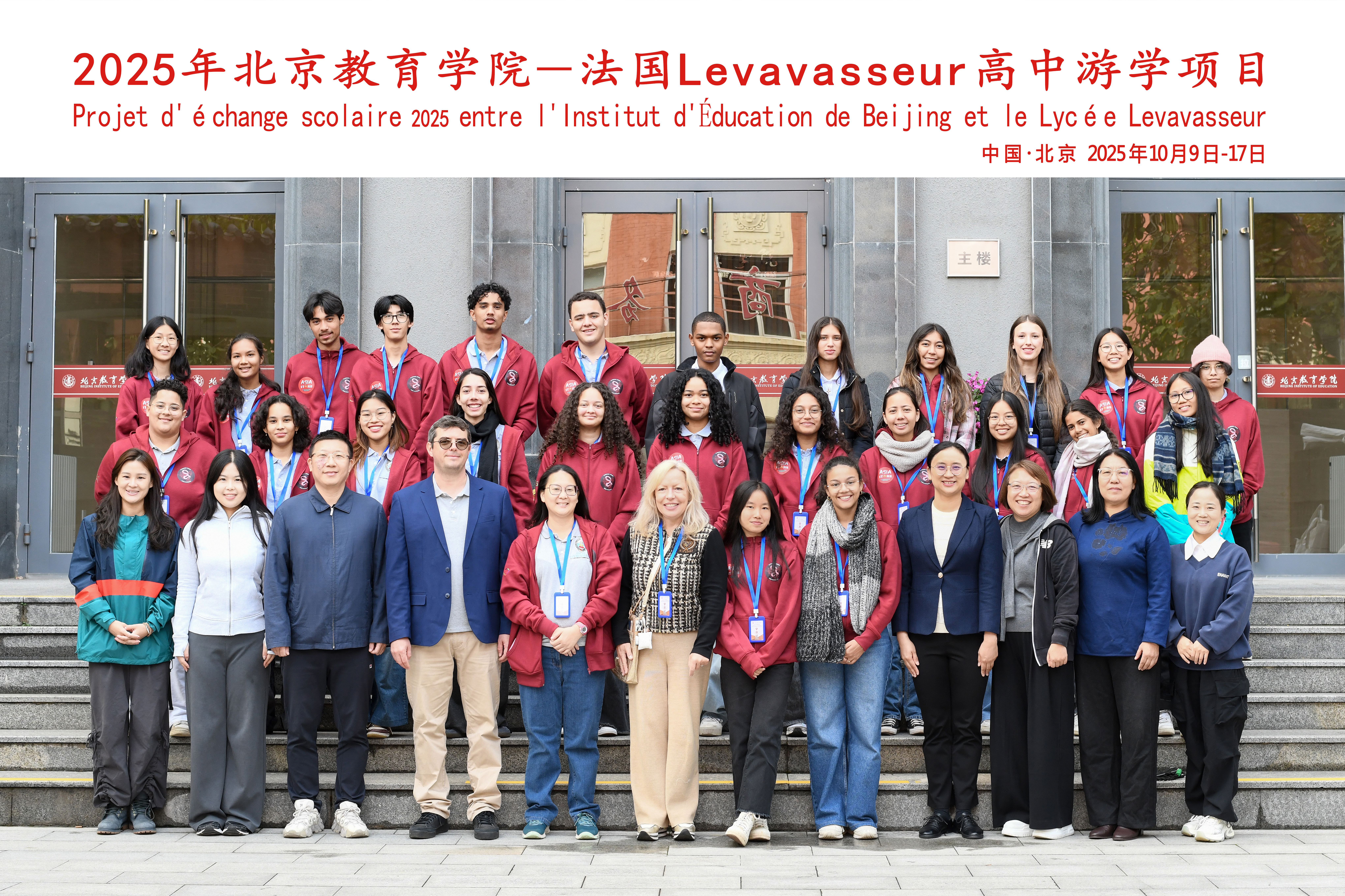 金秋送爽,硕果初绽。2025 年 10 月 10 日上午,北京教育学院 - 法国 Levavasseur 高中游学项目开班典礼在北京教育学院文兴街校区温情启幕。北京教育学院交流培训中心张丽彬老师主持、党政办公室刘雨萱老师担任翻译,这场跨越国界的教育交流搭建起了顺畅的沟通桥梁。