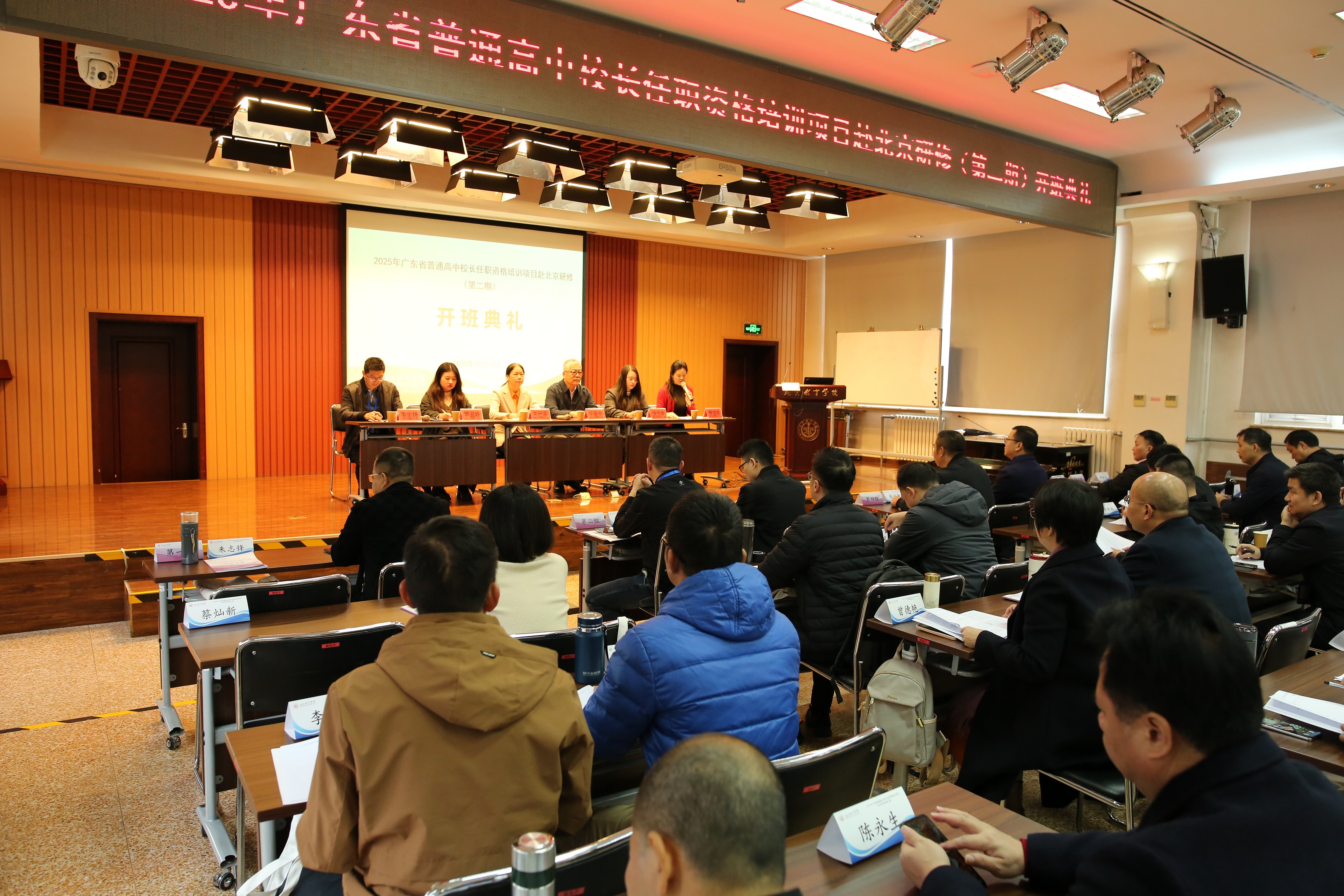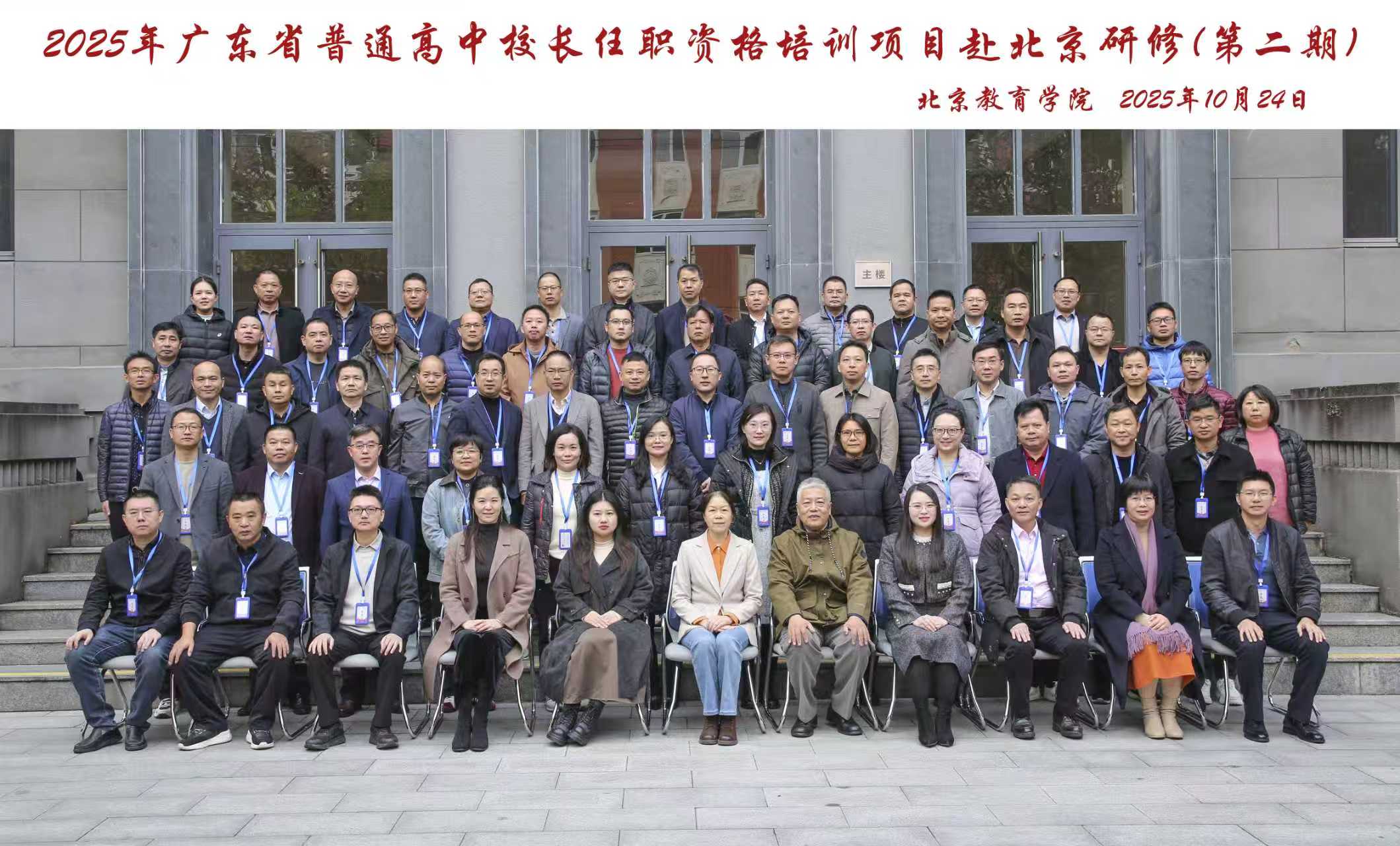 10月24日,2025年广东省普通高中校长任职资格培训项目赴北京研修(第二期)开班典礼在北京教育学院文兴街校区顺利举行。来自广东省的60余名高中校长齐聚北京,开启为期一周的深度研修之旅。北京教育学院合作培训部副主任王德龙、高级研修中心主任王远美,广东第二师范学院教师研修学院项目负责人洪未央老师、项目班主任罗淑桂老师出席。开班典礼由北京教育学院高级研修中心窦春晓老师主持。