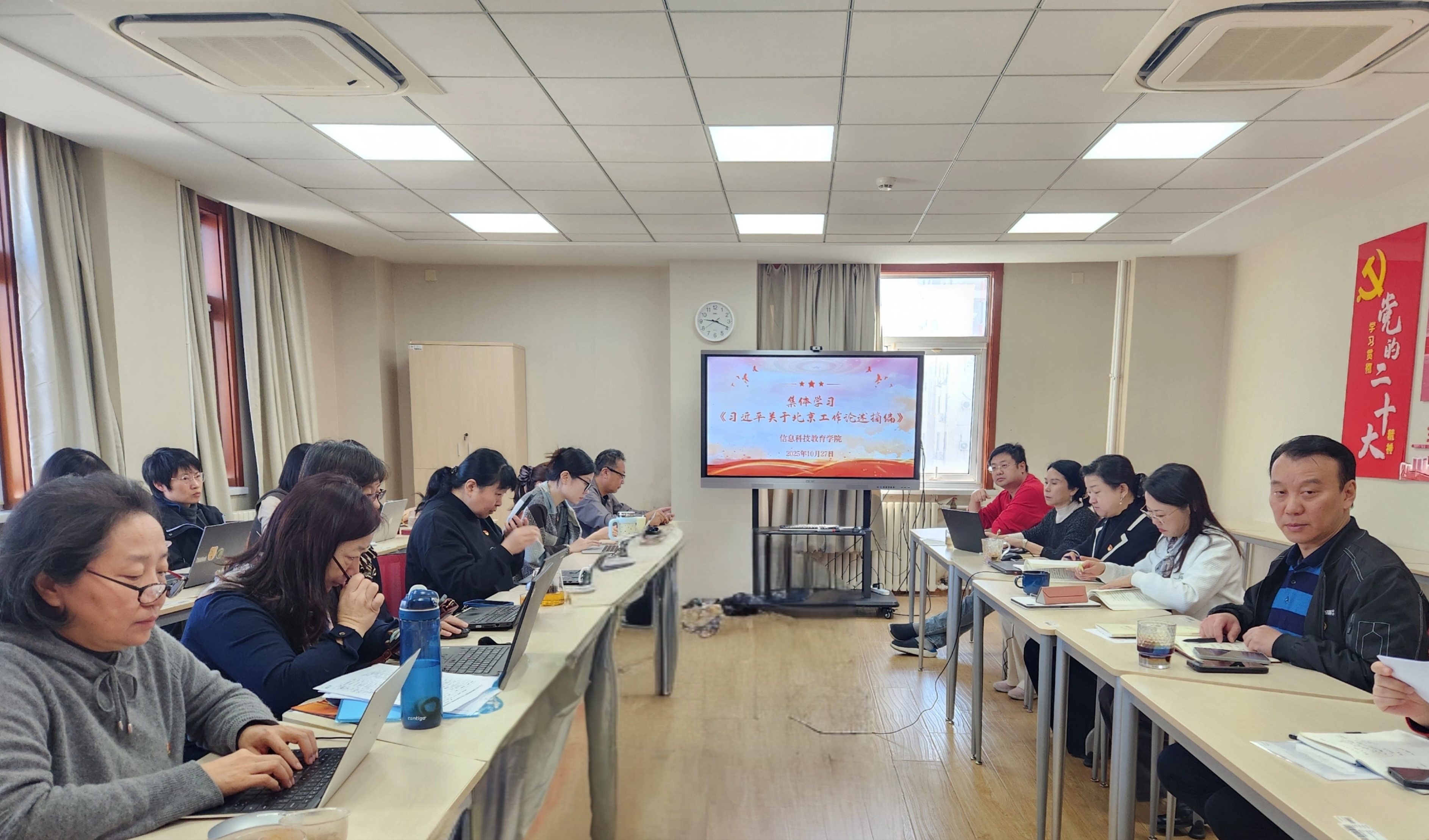 10月27日上午,信息科技教育学院直属党支部组织开展集体学习,集中学习《习近平关于北京工作论述摘编》和《中国共产党第二十届中央委员会第四次全体会议公报》。学习活动由直属党支部书记、院长吴珊主持,全体党员和教职工参加学习。
