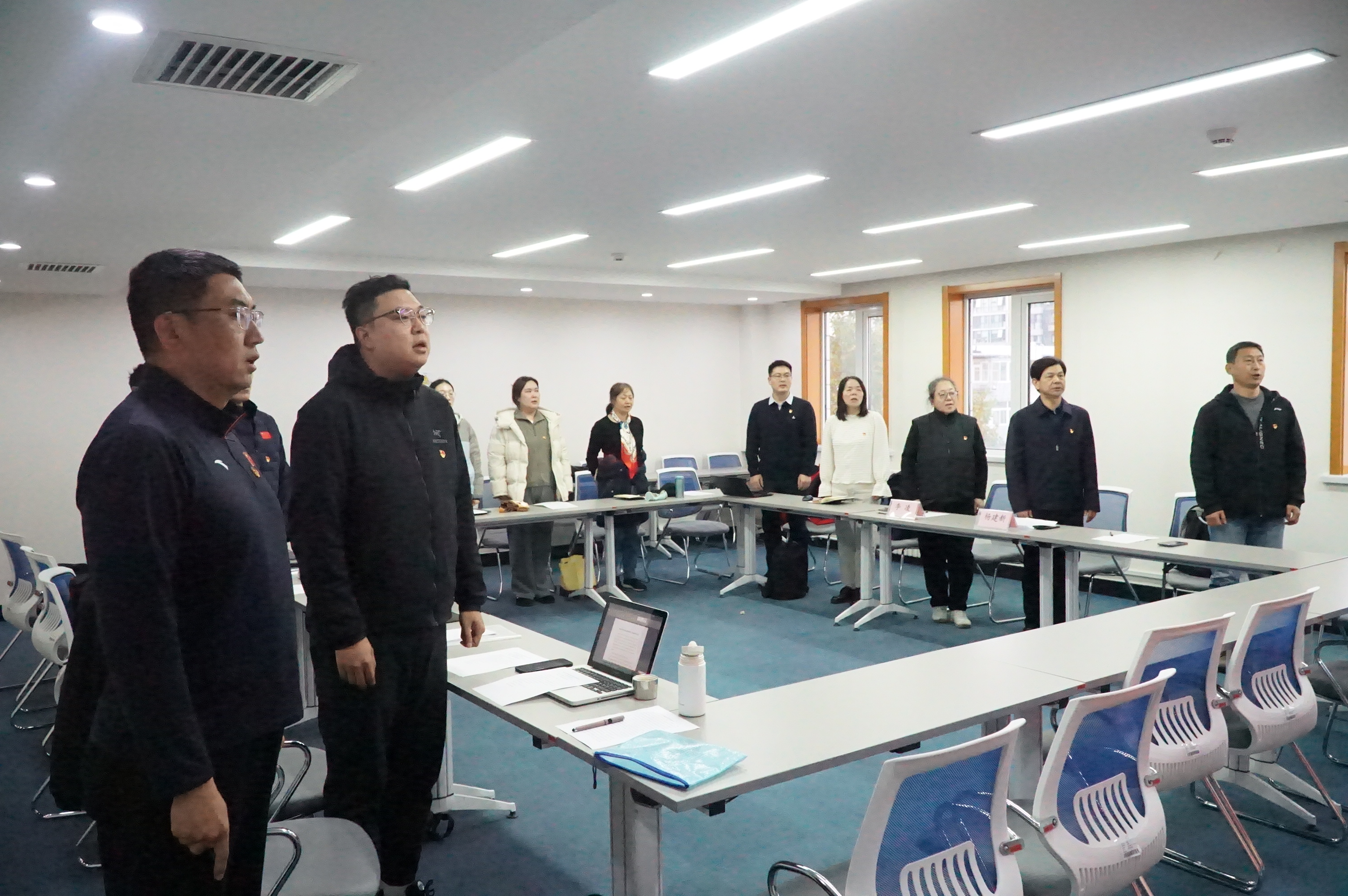 大会伊始,姜宇航书记介绍出席会议的领导与列席来宾,随后报告到会党员人数,确认会议符合法定程序。全体参会人员起立,面向党旗高唱国歌,为大会奠定庄重严肃基调。
