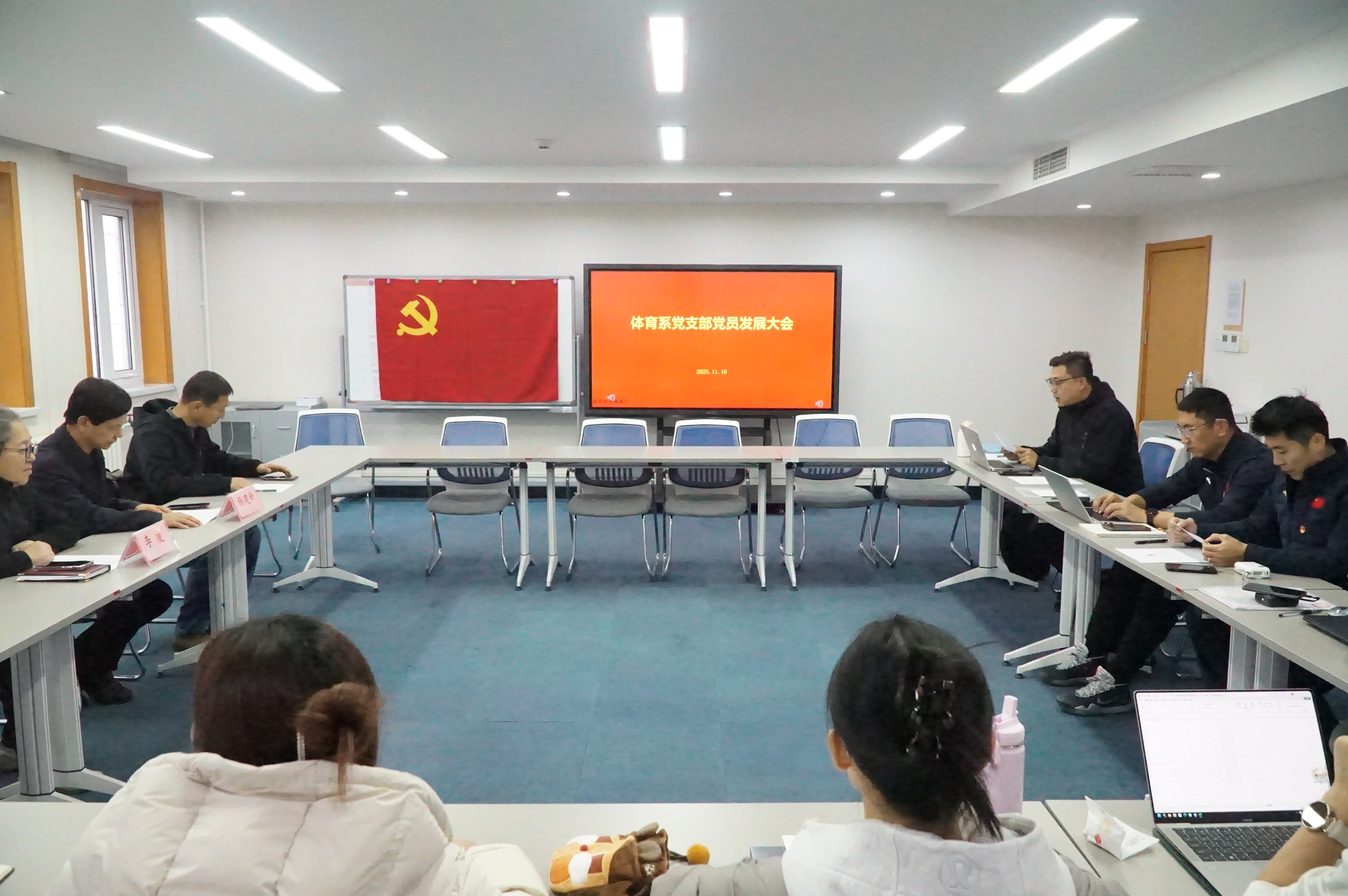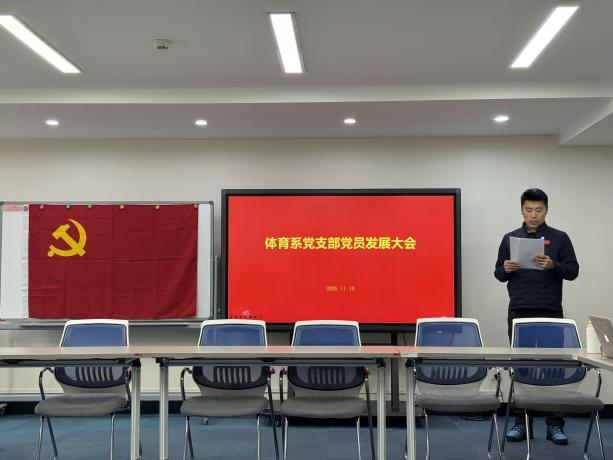 11月10日下午,体育与艺术教育学院体育系党支部在黄寺校区南楼504教室召开接收周航同志为中共预备党员的支部党员大会。会议由支部书记姜宇航主持,学院副院长杨建新,组织部副部长李凌,体育与艺术教育学院党总支书记周志勇、院长潘建芬出席,支部全体党员参会。