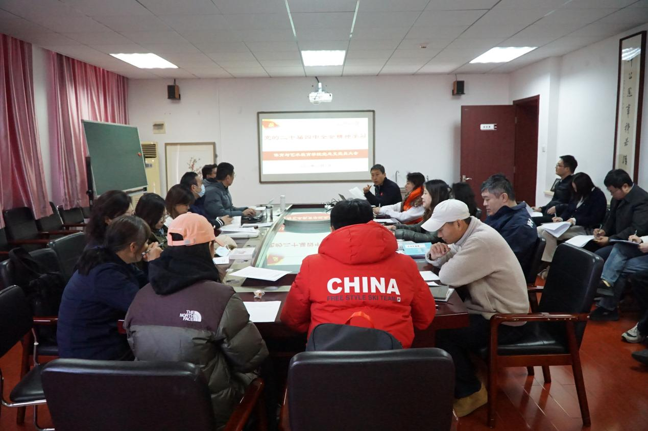 12 月 1 日上午,体育与艺术教育学院党总支在黄化门校区南楼二层会议室召开党员大会,专题学习党的二十届四中全会精神。会议由体育与艺术教育学院党总支书记周志勇主持,全体党员参加学习。