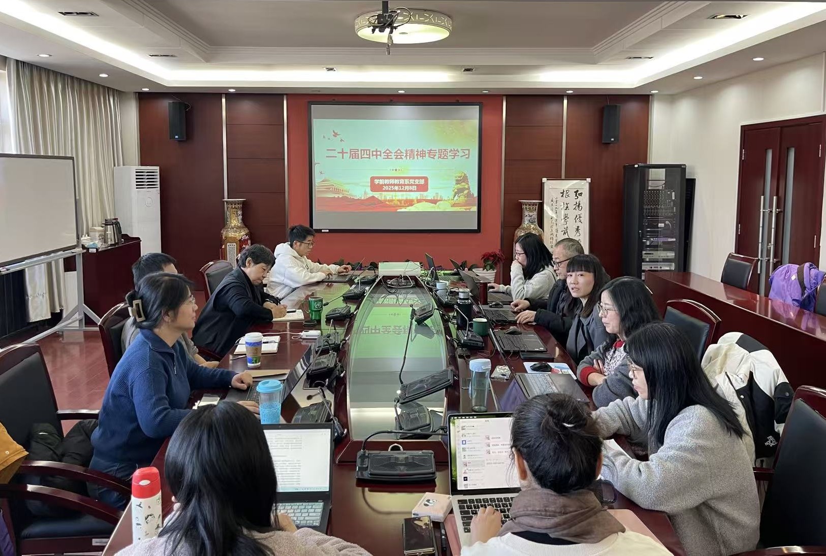 为深入学习贯彻党的二十届四中全会精神,准确把握其核心要义,探索“十五五”时期学前教育发展新航向,12月8日上午,学前教育学院党总支所属党支部召开“凝神聚力新征程 学思践悟谱新篇”主题党日活动,围绕党的二十届四中全会精神,畅谈学习体会。活动由各支部书记主持,全体党员、教职工参加。