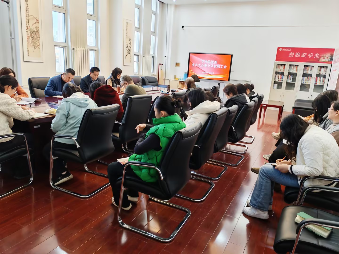 12月25日下午,根据工作安排,学术资源部召开支部党员大会暨全体教职工大会,开展集中学习。