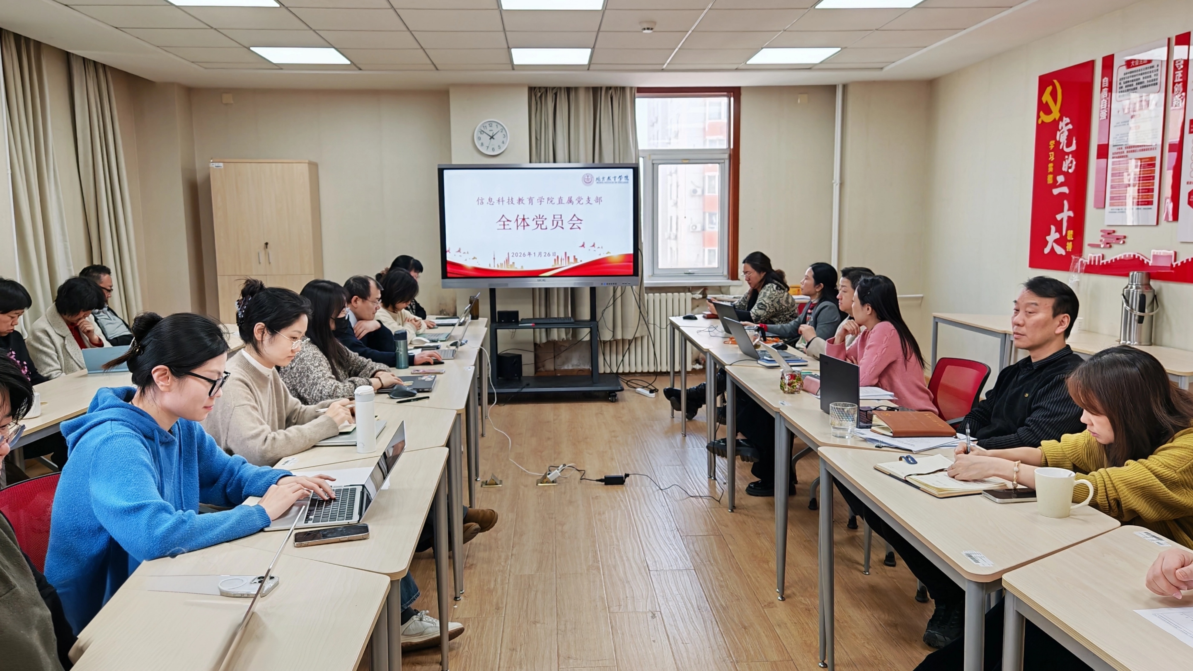 1月26日下午,信息科技教育学院直属党支部组织专题学习,集中学习习近平总书记在二十届中央纪委五次全会上的重要讲话和2026年全国教育工作会议精神,学习活动由直属党支部书记、院长吴珊主持,全体党员和教职工参加学习。