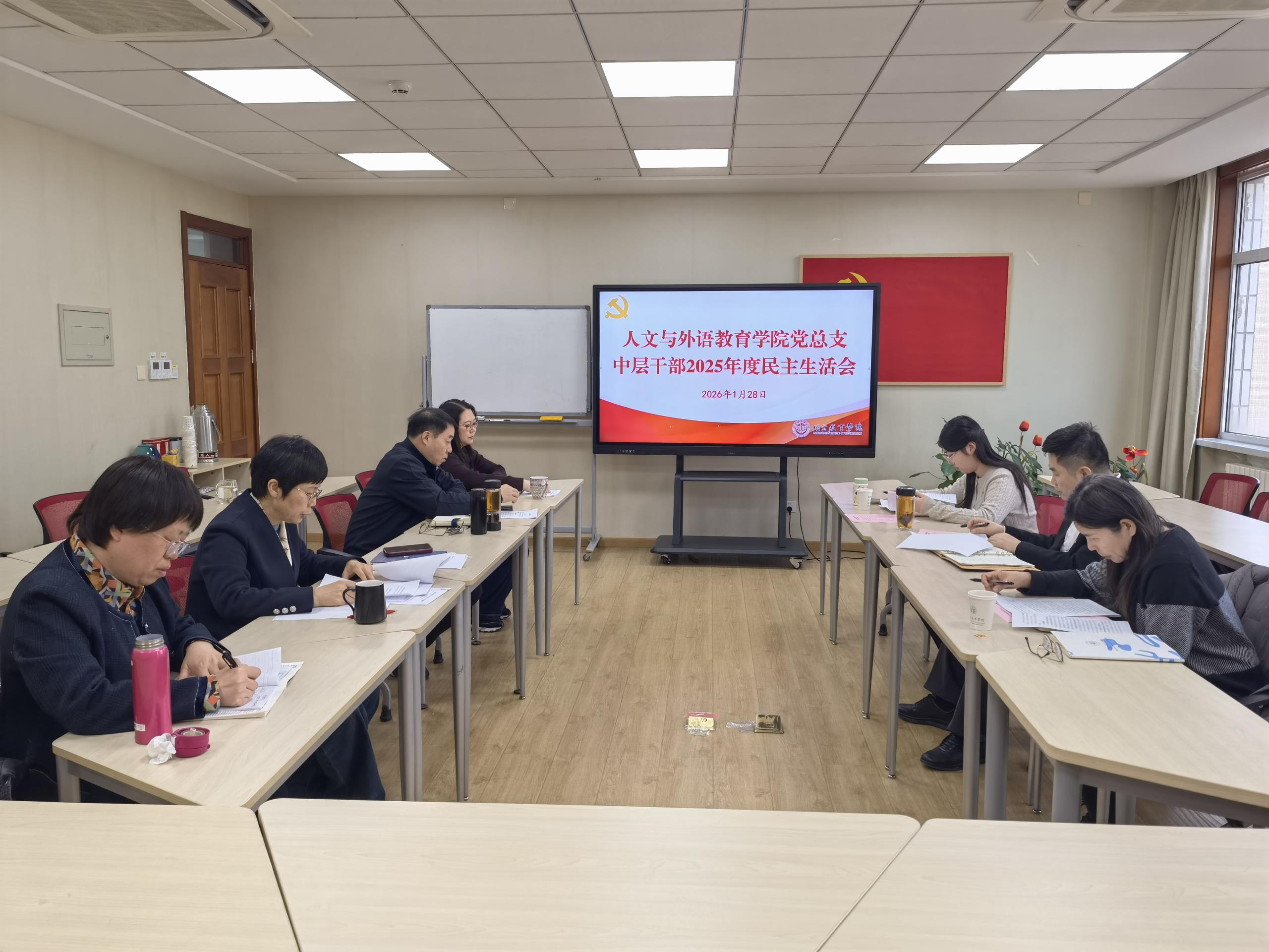1月28日上午,人文与外语教育学院召开了2025年度中层干部民主生活会。学院党委常委、副院长庞成立到会指导并讲话,组织部(统战部)干部季卫华、纪检监察办公室干部章文馨全程列席督导。会议由人文学院党总支书记王艳艳主持,班子全体成员参加。