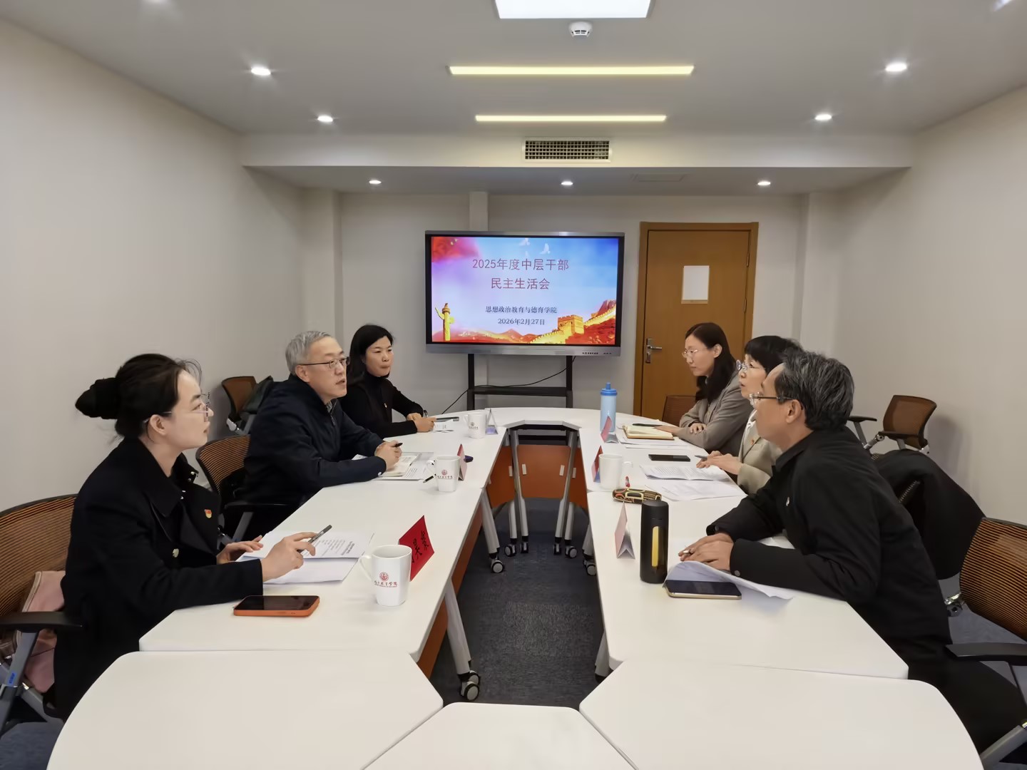 2月27日,思政学院召开2025年度中层干部民主生活会。学院党委副书记、院长桑锦龙同志出席会议,并对本次民主生活会给与点评和指导,学院党委组织部干部王延梅同志、纪检监察办公室干部胡昊寰同志列席监督本次会议。会议由党总支书记李淑君主持,思政院班子成员参加。