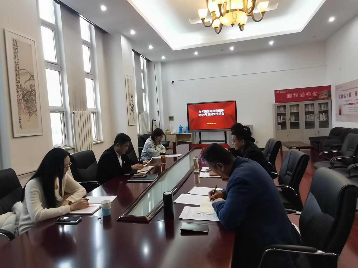 为深入学习贯彻习近平新时代中国特色社会主义思想,全面落实党的二十届四中全会精神,锲而不舍落实中央八项规定精神,推进作风建设常态化长效化,根据学院党委《北京教育学院中层干部2025年度民主生活会工作方案》部署要求,2月27日下午,学术资源部直属党支部召开2025年度民主生活会。学院党委常委、副院长庞成立到会指导并点评讲话,党委巡察工作和纪检监察办公室主任陈寒墅、组织部习忺到会指导,部门全体中层领导班子成员参加会议,会议由支部书记谢文华主持。