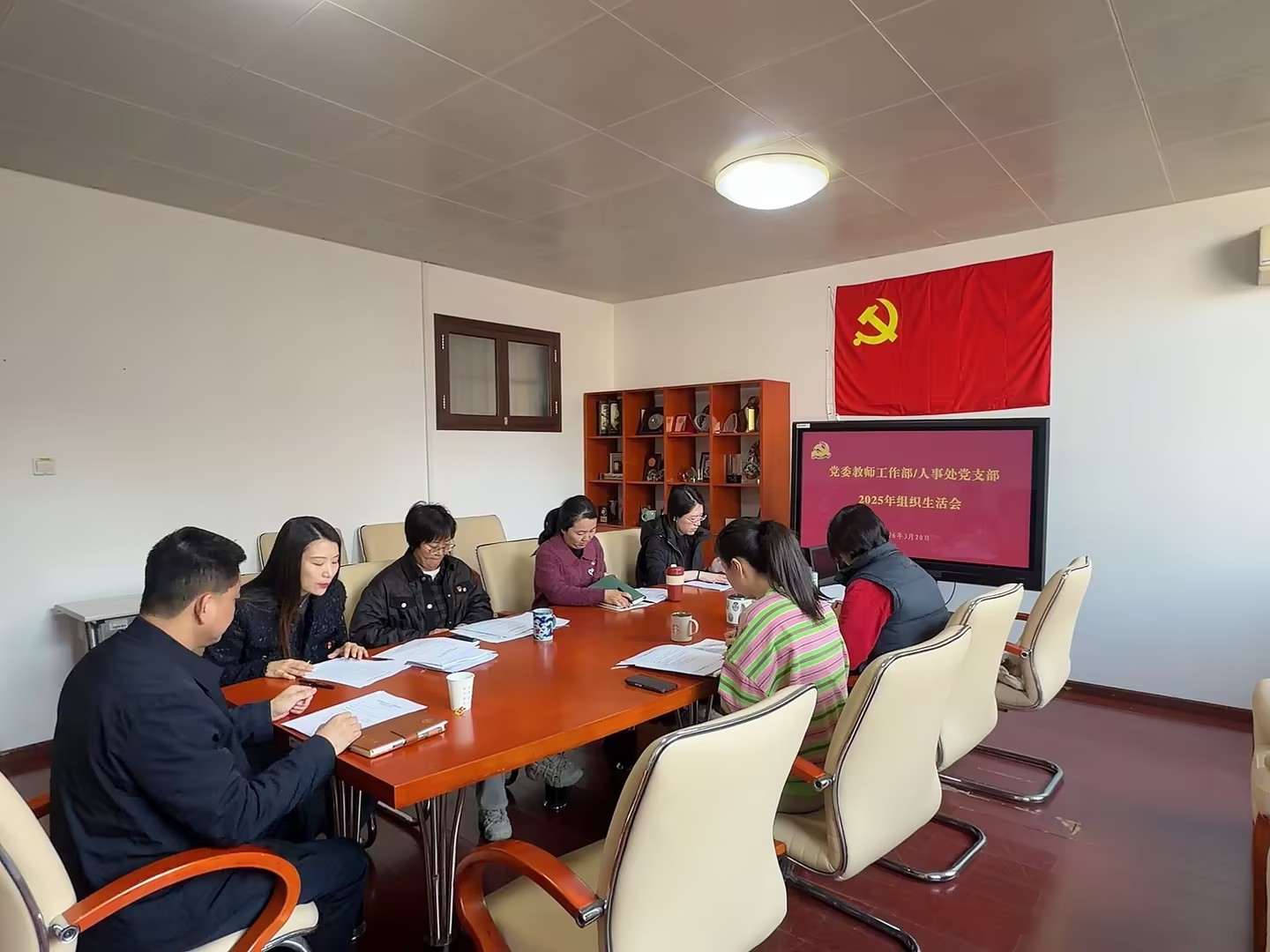 为深入学习贯彻习近平新时代中国特色社会主义思想,全面贯彻落实党的二十届四中全会精神,锲而不舍落实中央八项规定精神,进一步提升党支部凝聚力和战斗力,3月20日,党委教师工作部/人事处党支部召开2025年组织生活会,并开展民主评议党员工作。机关党总支书记谢文华出席会议并作点评指导。会议由支部书记张艾主持。