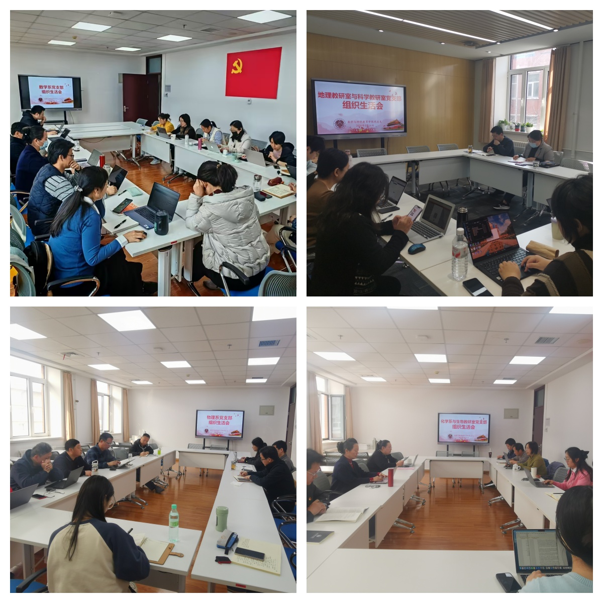 为深入学习贯彻习近平新时代中国特色社会主义思想,全面贯彻落实党的二十届四中全会精神,锲而不舍落实中央八项规定精神,推进作风建设常态化长效化,按照《北京教育学院2025年度党支部组织生活会和开展民主评议党员工作提示》的要求,3月16、23日,数学与科学教育学院党总支所属数学系支部、地理教研室与科学教研室支部、物理系支部、化学系与生物教研室支部分别召开2025 年度组织生活会,并完成民主评议党员工作。党总支各位委员分别列席并进行点评。