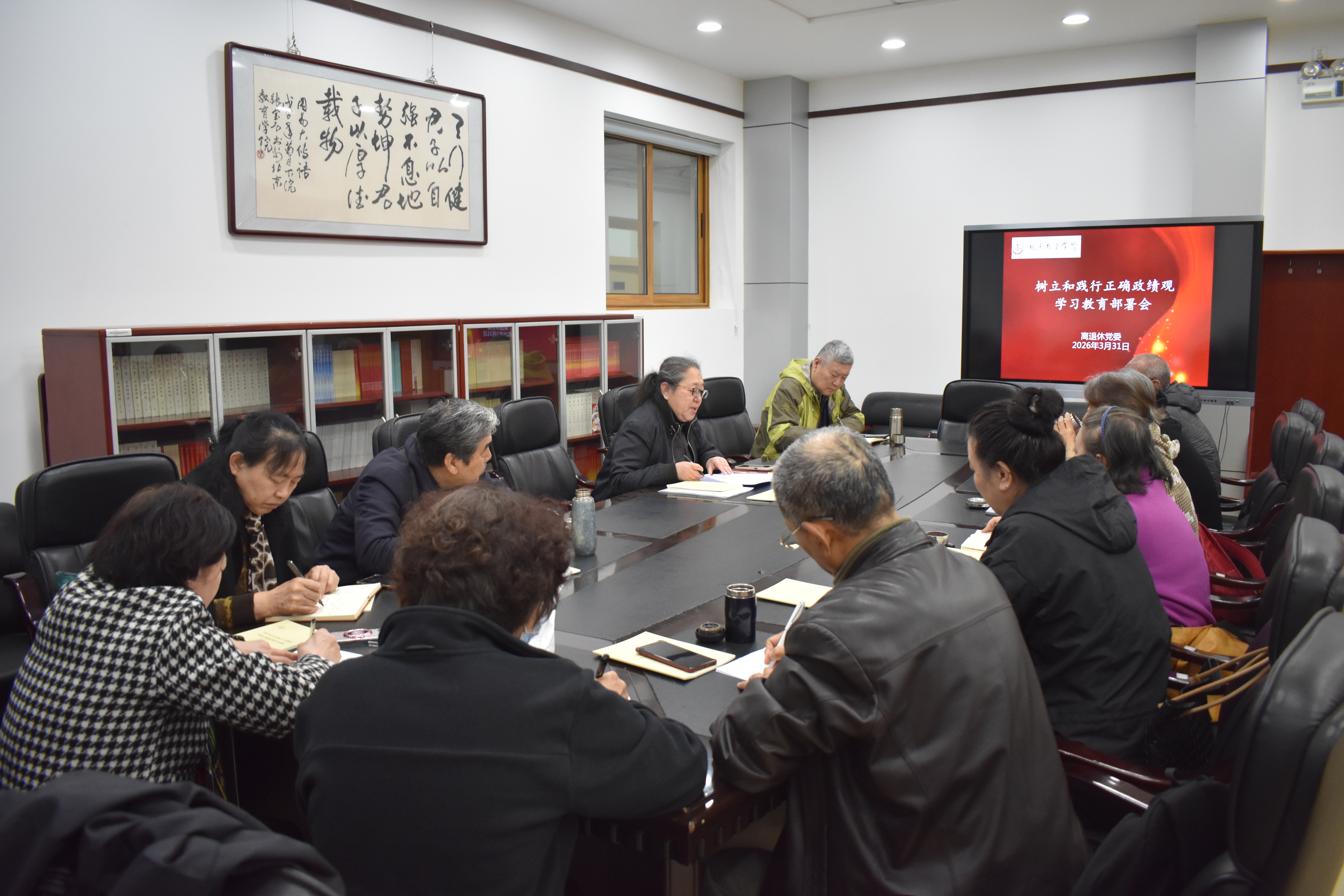 3月31日,离退休党委召开树立和践行正确政绩观学习教育部署会。离退休党支部书记、离退休工作处全体人员参会,会议由离退休党委书记李凌主持。