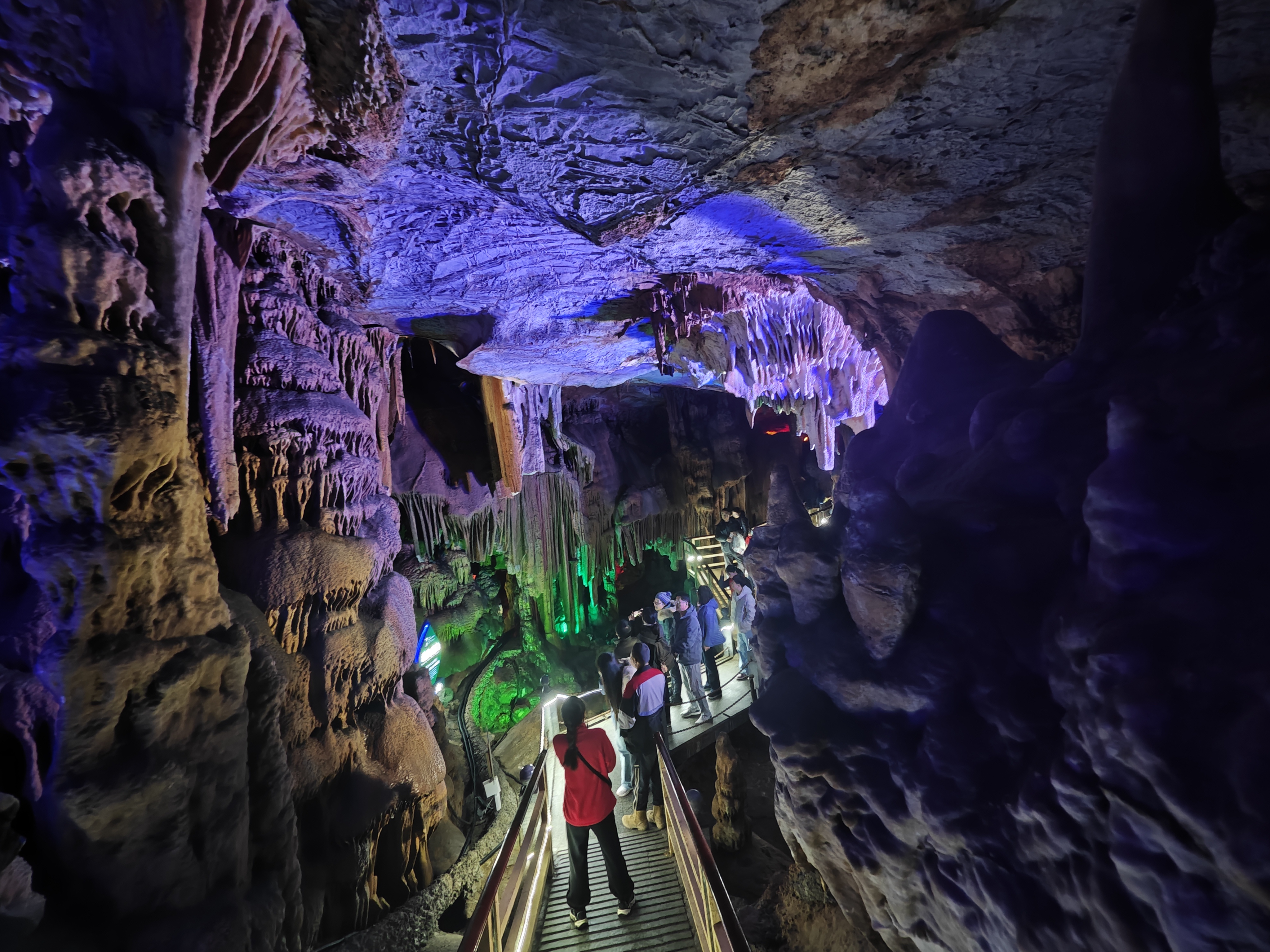 进入景区后,在专业讲解员的引导下,老师们有序探访了洞内开放的多层洞厅。面对石钟乳的垂坠奇姿、石笋的拔地而起、石柱的浑然天成,以及石幔的层叠流转、石花的精巧灵动,大家纷纷驻足观赏,兴趣浓厚。参观过程中,大家围绕沉积物的形成周期、化学构成及地质演化逻辑等问题,与讲解员深入交流,各学科教师间更结合专业视角展开探讨,让现场互动既轻松愉快又充满学术氛围。