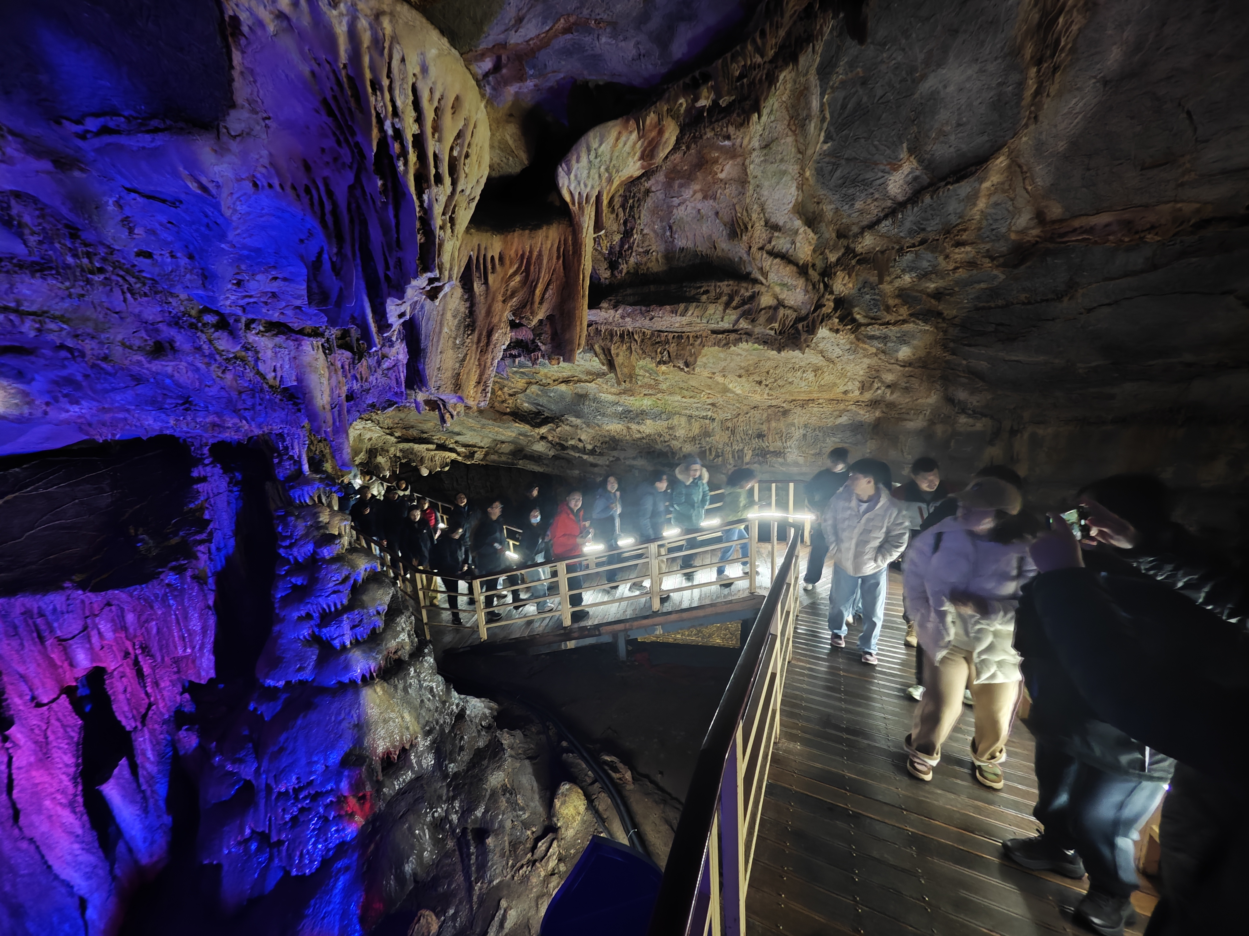 教师们穿行于瑰丽奇幻的溶洞之中,亲身观察了地下水对可溶性岩石长期的化学溶蚀和物理侵蚀作用所塑造的壮观景象。这不仅是一次视觉盛宴,更是一堂生动的“现场教学课”。不同学科背景的教师从各自专业角度出发分享见解,为教职工拓宽自然科学视野,提升科学素养实现科普赋能与调研支撑。