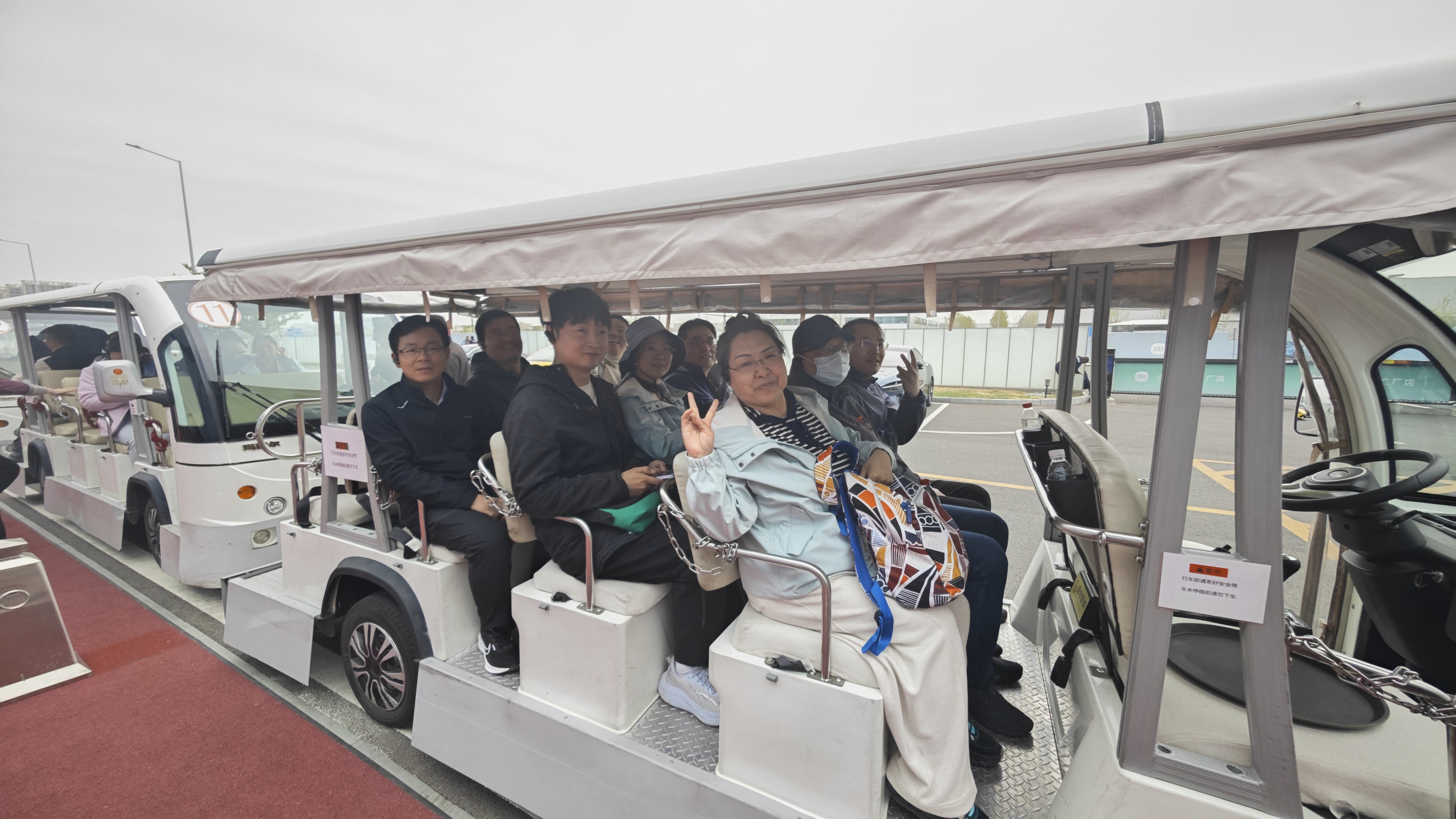 游览厂区前乘坐电瓶车