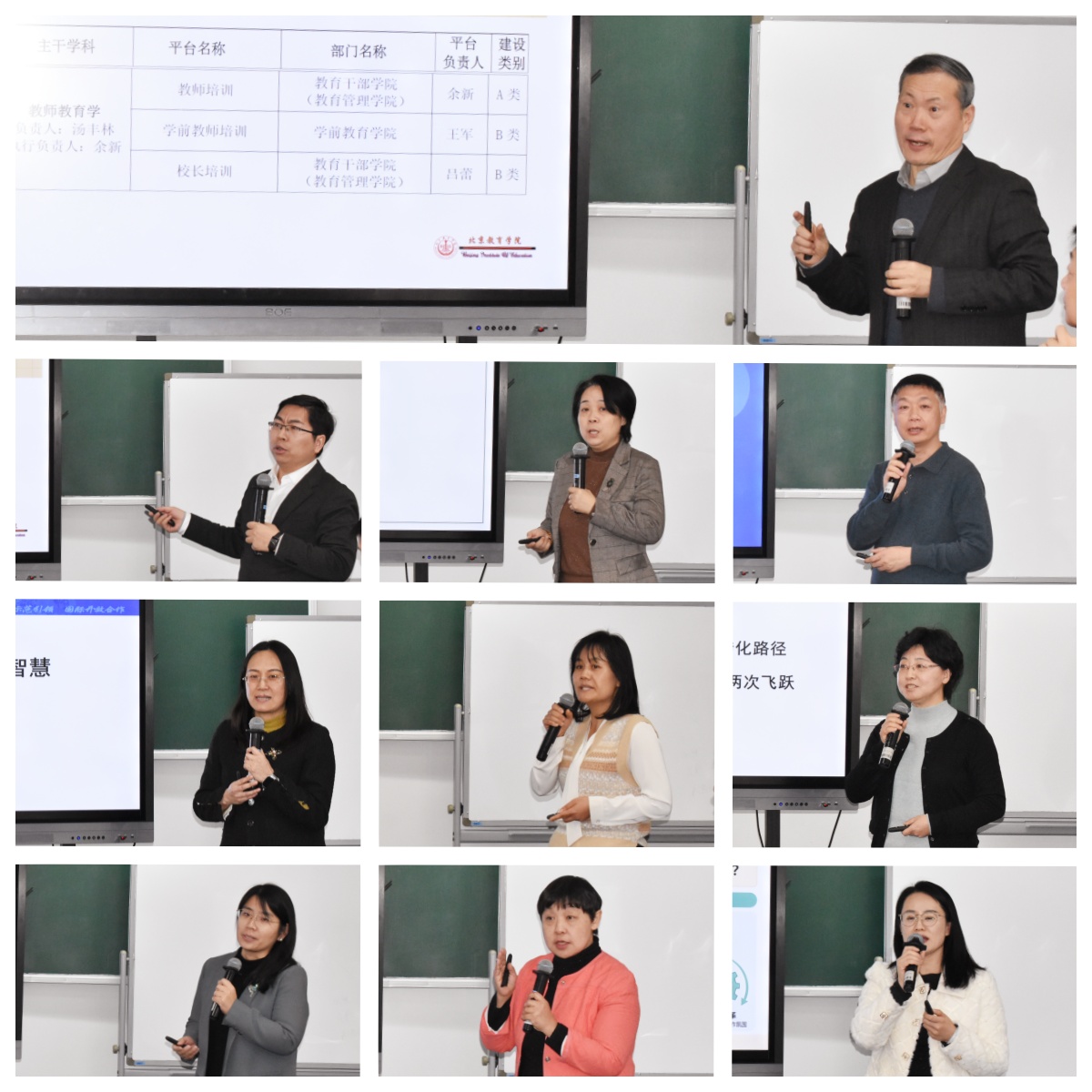 2026年1月13日至21日,科研处(学科建设办公室)依据《北京教育学院学科建设三年行动计划》及《北京教育学院“十四五”时期学科创新平台评审评估实施方案》相关要求,在黄寺校区成功组织召开“十四五”时期学科创新平台绩效评估系列研讨会。本次评估以学院四大主干学科为单位,分5场有序开展,全面评估19个学科创新平台建设成效。学院党委常委、副院长张林师出席相关会议并听取平台汇报和专家指导意见,19个学科创新平台负责人、骨干、团队成员及基地学校代表参会,系列研讨会主要由科研处(学科建设办公室)处长李雯教授主持。