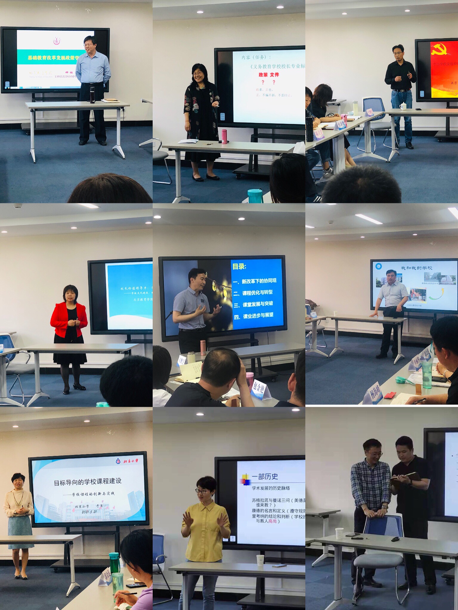 在为期一周的集中研修中,项目组通过专家讲座、主题工作坊、现场学习等多种形式为学员组织了教育政策、校长专业标准、党组织领导的校长负责制、学校文化建设、学校课程建设、教育教学领导、引领教师专业发展等丰富的研修内容。师资团队更是阵容强大,学院副院长钟祖荣教授为学员讲解了基础教育改革政策,校长学院和基础教育党建研究中心先后有3位教授、6位副教授做专题讲座或参与工作坊和专家点评等研修活动。同时还聘请了有关高校、科研院所的专家和一线卓越的中小学校长为学员授课,他们的智慧贡献也为该研修班的高品质提供了有力支持。