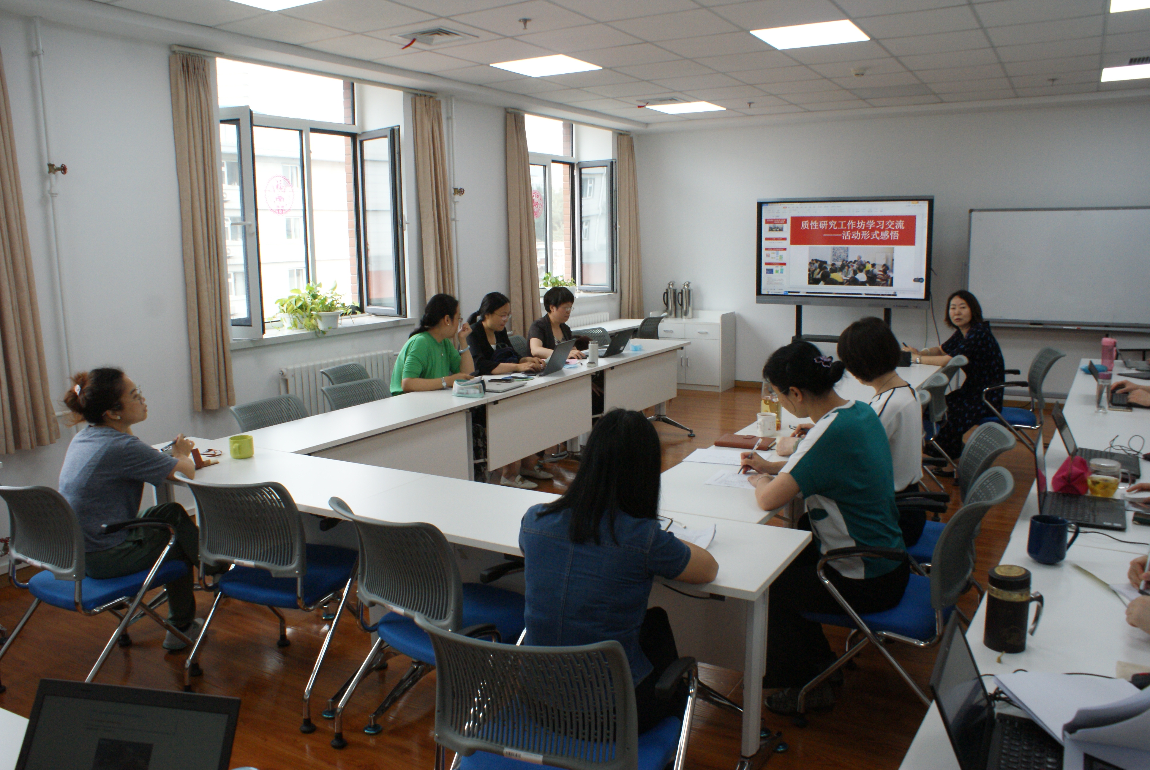 其中,国红延老师以《质性研究工作坊学习交流——活动形式感悟》为主题,通过“折磨”和“拥抱”这两个关键词,从工作坊、翻转课堂、合作学习、自主学习四个方面分享了学习心得体会。孟彦老师主要分享了质性研究的内涵理解,包括如何确定好的质性研究问题,如何通过访谈和焦点团体收集资料,如何通过三级编码开展类属分析和情境分析,如何撰写质性研究报告等方面的内容。李慧芳老师侧重交流了该培训班在教学组织管理、授课内容方式等方面的经验,同时她还试着从学员角度去体验培训,从而发现自身培训中的问题,找出最行之有效的方法。结合学习内容,李健莉、王晓玲、周莹、夏素彦四位老师补充分享了学习收获。