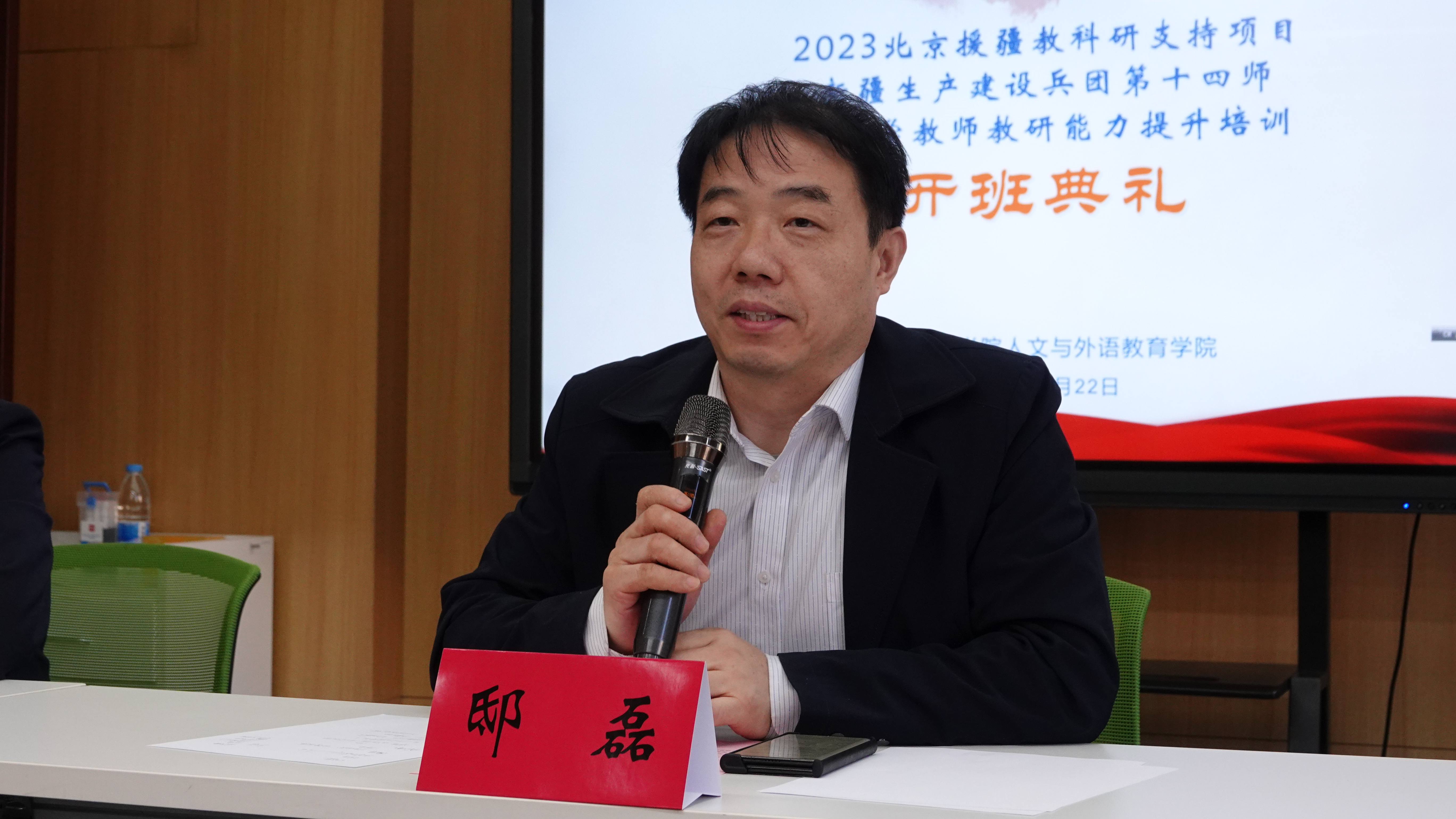 最后,人文与外语教育学院邸磊院长发表总结致辞,在回望了北京教育学院建校70周年的峥嵘历程基础上,表达了对此次培训的殷切希望:期待累累硕果,期待落实收获,学员与项目负责团队形成学习共同体,共同促进教师专业发展,为新疆十四师学生成长奠基。