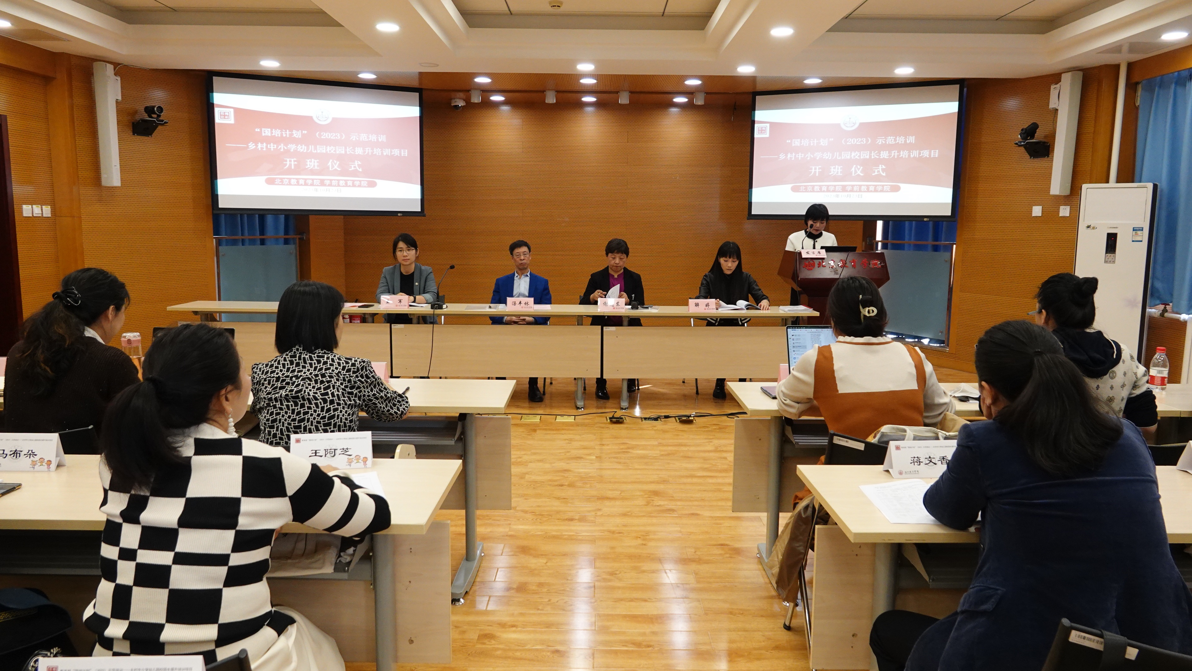 10月23日上午,“国培计划(2023)”示范性项目乡村中小学幼儿园校园长提升培训项目开班典礼在北京教育学院中轴路校区举行。北京教育学院副院长汤丰林、学前教育学院党总支书记李炬、院长谢志东、副院长李丰以及学前教育学院全体教师出席了本次开班典礼。来自国家乡村振兴计划支持的四川、贵州、云南、广西、陕西、甘肃、宁夏、青海等八个省、自治区的48位园长参加本次培训,学员中包括彝族、藏族、苗族、土家族、白族、侗族、水族、穿青人等多个民族。开班典礼由学前教育学院院长谢志东主持。
