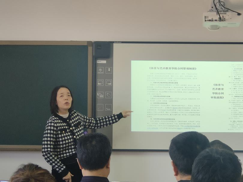 首先,潘建芬院长传达了2022年度预算执行与决算审计发现问题整改结果报告。她逐一列举了审计工作中体育与艺术教育学院存在的问题,从项目管理、制度执行、工作流程等方面深入剖析了问题产生的原因,特别是明确了下一步整改工作的计划与措施。之后,潘院长重点传达了学院党委书记肖韵竹同志在院长办公会上的讲话精神,强调要学习领会习近平总书记在“二十届中央审计委员会第一次会议上的讲话”精神,围绕中心工作精准审计,整改要动真格,不能屡改屡犯,要从制度规划、过程控制、宣传教育等方面加强审计能力建设。潘建芬院长要求,体育与艺术教育学院全体教职工要对已发现的问题严肃整改,加强责任意识,审慎认真,防患于未然。