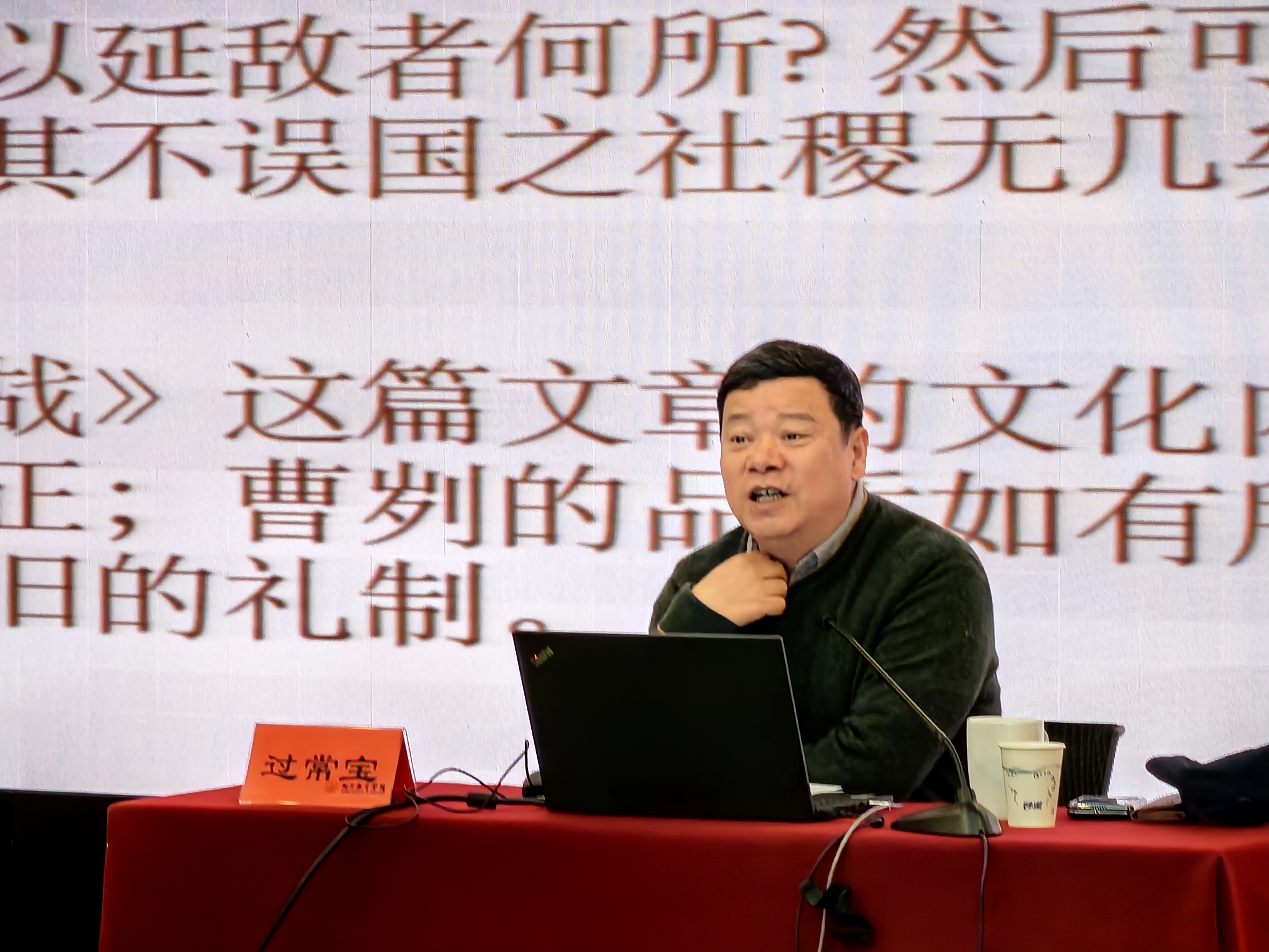 过常宝教授在讲座中阐述了中学古文教学对传承传统文化的重要性,分别从历史文化情境、文化知识、文化理解、文化差异等层面进行讲解。在文化情境方面,过教授以《曹刿论战》《师说》等作品为例,分析在中学古文教学时如何通过考察历史文化情境理解作者观点;关于文化知识,通过对《记承天寺夜游》《登泰山记》等文章进行分析,强调要联系价值观念、思维方式等进行文化理解;谈到文化阐释,过教授在分析《庄子与惠子游于濠梁之上》《前赤壁赋》等经典作品的基础上,指出要对文化进行充分感悟与理解才能把握其内蕴,不宜过度阐释;在文化差异方面,过教授以《愚公移山》《过秦论》等古文为例,分析古今价值观念、社会文化环境等差异导致的不同理解,并提出相应的解决方案。最后,过常宝教授总结了语文学科的人文性和工具性特点,点出语言与文化是语文学科的两大要素,进一步强调文化阐释在语文教学中的重要意义。